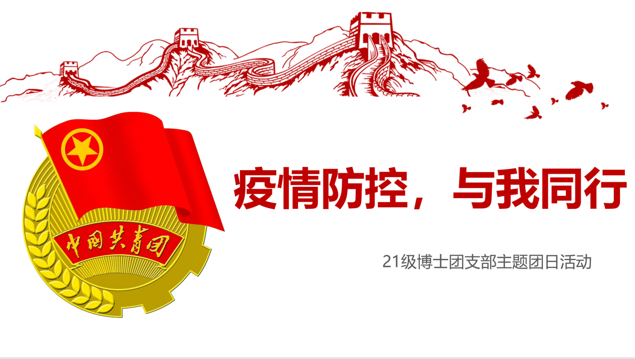 2021级博士团支部开展了“疫情防控,与我同行”主题团日活动。团委负责人、研究生辅导员孙佳钰以及全体2021级博士团员参加了本次线上团日活动,活动由2021级博士团支书马娇艳主持。