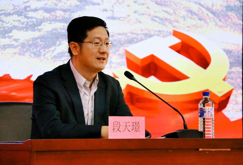 考古学院副院长、博士生导师段天璟教授为学院做了一场题为“坚持中国道路,传承中华文明,坚定文化自信,开创美好未来”的专题党课。报告会由学院党委书记王晓荣主持,学院领导班子成员、中层干部及师生党员共计一百余人参加了本次党课学习。