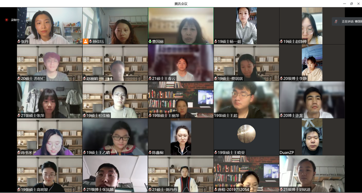 研究生党支部举办“同心协力·共克时艰”主题党日活动,党委副书记曹国丽和全体研究生党员通过线上方式参加本次活动,活动由研究生辅导员孙佳钰主持。