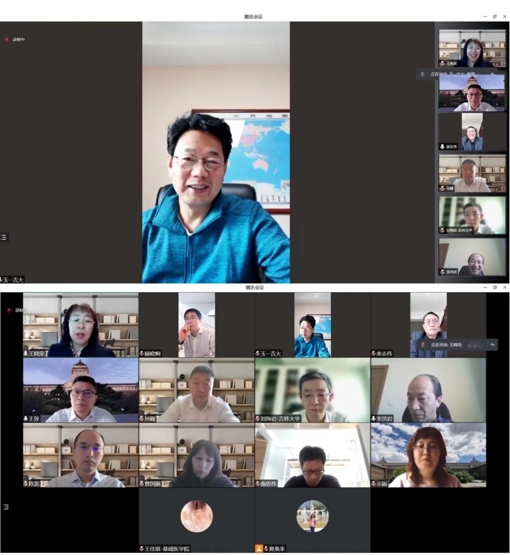 医学发展的重任与使命,学院要始终坚守国之大计和党之大计的办学宗旨,坚定社会主义办学方向,落实立德树人根本任务,不断增强“四个意识”、坚定“四个自信”、做到“两个维护”;二是进一步明晰发展理念,贯彻落实习近平新时代中国特色社会主义思想,把教育的“四个服务”作为根本任务,同时明确构建发展格局,明确动力所在,明确发展阻力;三是进一步探索发展定位,如何找到一个明晰的历史定位和明确的发展方向来促进基础医学的发展,把握住新医科建设的发展契机,是需要这一代基础医学人去深刻反思和努力探索的,但是更重要的是一定要坚持中国特色、中国话语、中国气派的基础医学学科特点;四是坚持发展定力,核心是坚守政治定力的问题,这也是我们中国特色社会主义大学必须坚守一种定力。同时还要坚定发展目标,明确发展策略,做好发展规划,坚定我们发展的心劲儿和精气神,以打开基础医学发展的新局面。最后王玉柱副校长鼓励学院领导班子带领好学院骨干团队,坚定发展信心,久久为功。