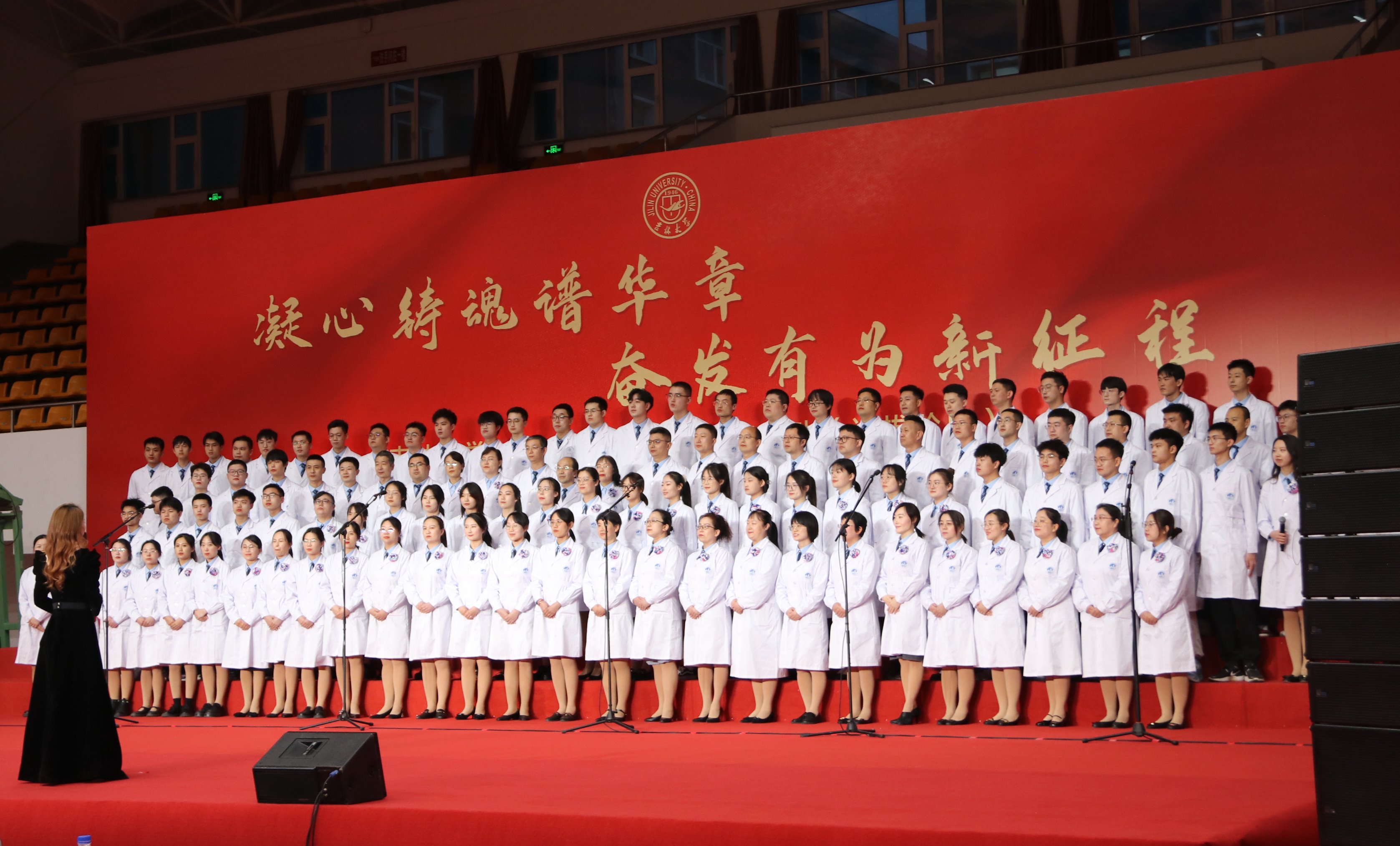 师生良好的精神风貌。他们歌声嘹亮、队形整齐、仪态大方、情绪饱满;随后的《众人划将开大船》更是让观众们的欢呼声如潮似浪,整场比赛精彩纷呈,掌声迭起。