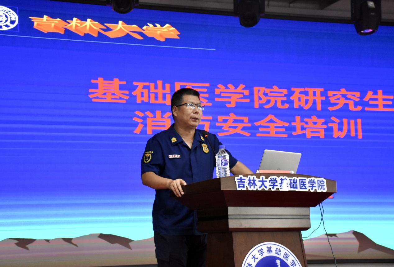 新民校区保卫处消防科科长安志成担任主讲,2023级全体新生参加会议。