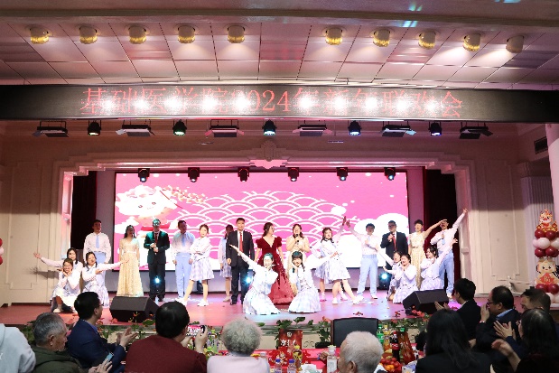 玉兔辞旧岁,喜看一载盈车嘉穗,金龙报新春,且听来日凯歌欢腾。12月29日下午,学院全体教职工和离退休同志欢聚一堂,用喜庆的歌声,欢快的舞蹈迎接2024年的到来。