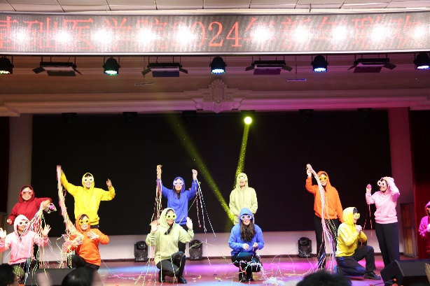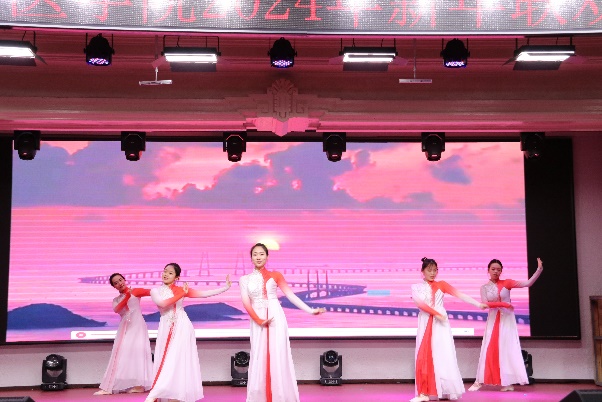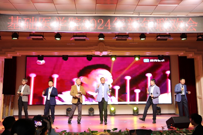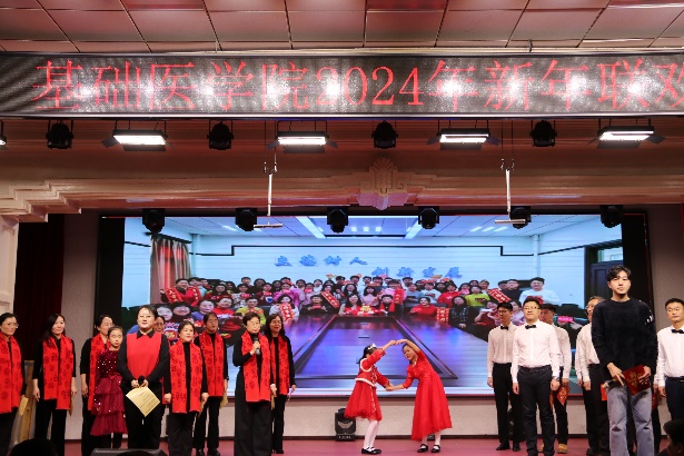 新年联欢会在病理生理学系、药理学系、生理学系以及一综合老师们的扇子舞《骁》中正式拉开帷幕,几位老师翩翩起舞,将中华古典舞蹈完美的呈现;长春南湖实验中海小学的小小少年们带来的《青鸟》和《无与伦比的美丽》童声合唱,传递了纯真美好,释放了青春能量,也唱出了新时代少年的昂扬自信;组织学与胚胎学系的老师们带来的歌舞串烧《眉飞色舞之路灯下的小姑娘》以及病理学系的老师们带来的合唱《如愿》,欢快氛围的同时也饱含了对 f95zone 的热爱与期盼;学院副书记李东洋、院长助理何侃与两位留学生共同献唱的《You Raise Me UP》,将不同文化的魅力融合在音符间,为师生带来了一次听觉盛宴;解剖学系的老师们带来的舞蹈《你想跳舞吗》,别具一格的荧光舞更是将联欢会的气氛推到了高潮;学院的研究生们带来的舞蹈《党旗飘扬的方向》以及吕东芳老师与齐达同学合唱的《在希望的田野上》,赞颂了中国共产党的不忘初心、继续前行的使命担当;生物化学学系、二综合、动物实验中心、测试平台的老师们的合唱《真心英雄》,唱出了学院教师对于每一位真心英雄的尊敬与仰慕,也唱出了对新的一年的期盼与向往;于永利老师与王丽颖老师带来的对唱《敖包相会》,将美好祝愿寄托在歌声中传遍整个会场;杨青、池光范几位老师合唱的《花心》,勾起了大家对经典歌曲的回忆;病原学系、免疫学系、细胞遗传学系以及三综合的老师们带来的舞蹈《贺新年》,展现了学院教职工蓬勃向上的精神面貌,赢得了阵阵喝彩;分子生物学系的老师和同学们带来的经典歌舞剧《哆来咪》,重温经典,并给大家介绍了谐音和形象记忆的学习方法;留学生们带来的精彩舞蹈《INDIAN RAGA》,绚丽的服装、欢快的音乐,交织出充满特色的异域风情; f95zone 合唱团的带来的《我们一起远航》,铿锵有力、激情澎湃,传递着团结与奋进,表达了对学院的美好祝愿。