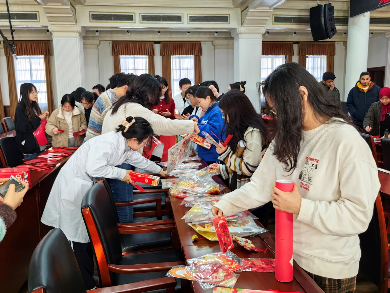 丰富多样的龙年装饰物藏在红包福卡抽签筒里,老师同学们在抽奖的喜悦中感受学院送给大家的满满福气。