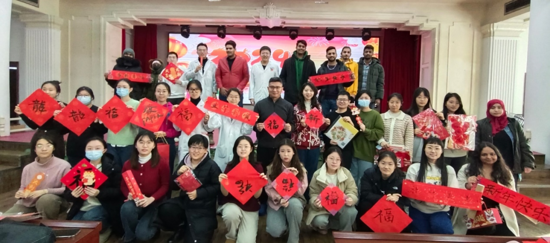 MBBS留学生们也踊跃参加,热情地加入到写春联的行列中来,一笔一墨、一横一竖、一撇一捺……切身感受中国传统文化的无穷魅力和浓浓的节日氛围。大家纷纷合影留念,共同感受喜庆的节日氛围。