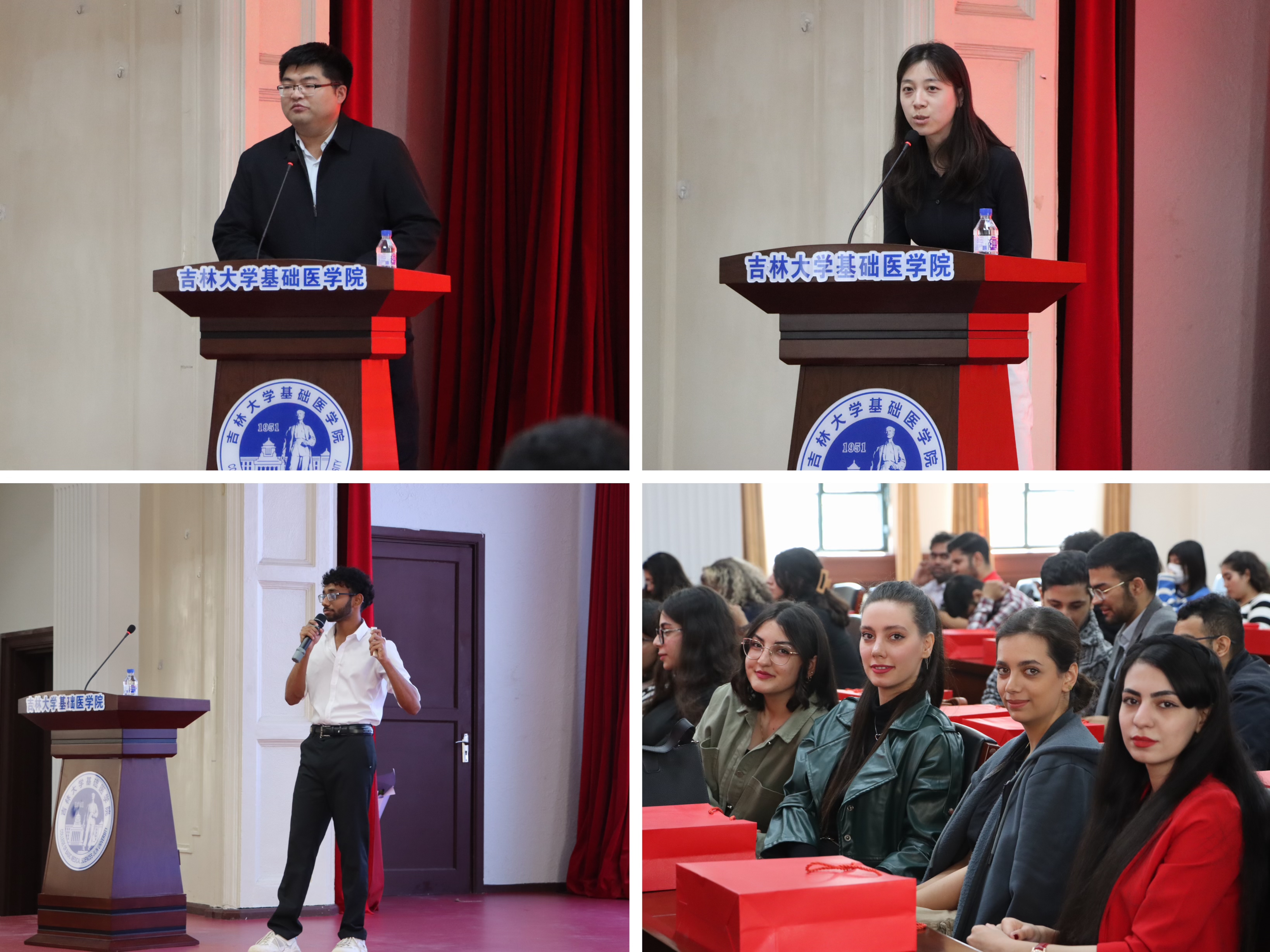 感受到家的温暖,尽快适应并融入校园生活。2024级国际学生辅导员刘思含老师也在会上表达了对新生的关怀与期望。未来的日子里她将为新生提供生活上的帮助和指导,希望新生们能够积极面对挑战,珍惜大学时光,实现自我成长。2024级MBBS班主任闫天昊和辛卓远两位老师表示,将在日后的学业和生活中,全力以赴为学生提供帮助和支持,解答疑惑,与学生们共同成长,携手并进。