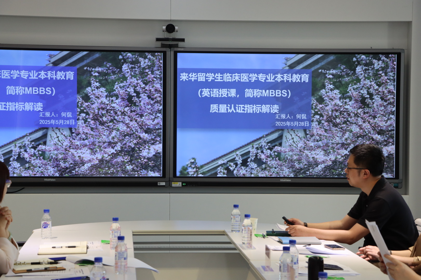 副院长何侃逐条、细致地解读了来华留学生临床医学专业本科教育(英语授课)质量认证指标体系。学校相关职能部分参会负责人就指标体系进行了深入讨论与交流。