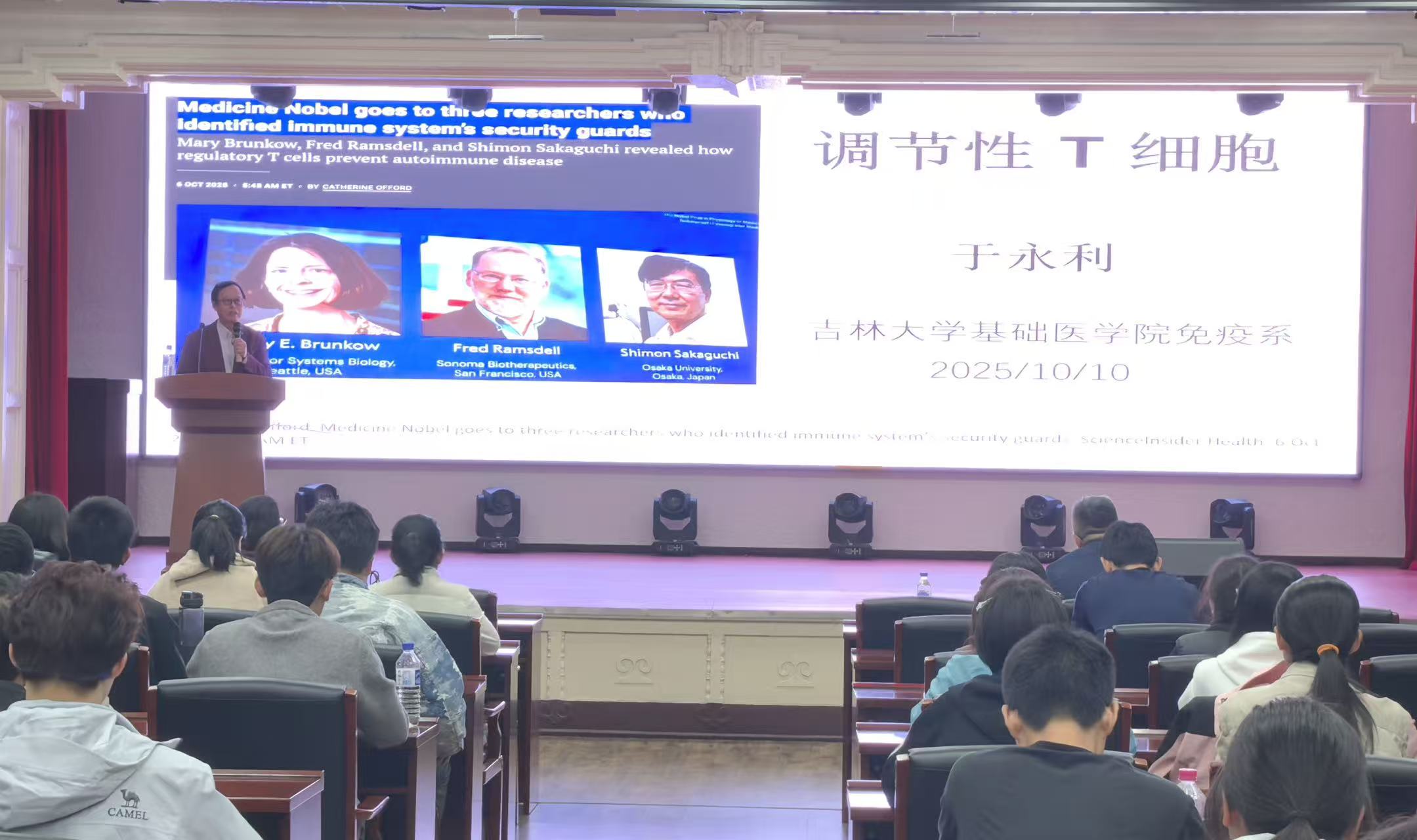 免疫学系于永利教授进行了题为“潜心基础医学研究 三十年磨一剑——2025年诺奖解读”的专题讲座。学院全体本科生和教师代表共200余人参加了本次讲座。
