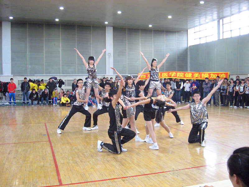 白求恩医学院队由2011级的6名男生、6名女生组成。比赛过程中,队员们动作优美连贯、准确熟练,队形变换自然清晰,在明快的节奏中默契配合,尽展白院学子阳光健康、奋发向上的青春风采。最后,白求恩医学院队以微弱差距未挺进前三,惜居第四。