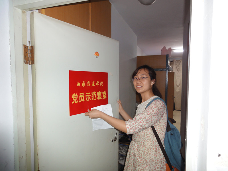 关于在创先争优活动中深入开展基层组织建设年活动的实施方案》,促进和完善学生寝室管理制度,5月22日晚,白求恩医学院团委组织部部长赵狄、学生会秘书长周春禹等学生干部带队对第二批党员示范寝室和党员示范床进行了挂牌。