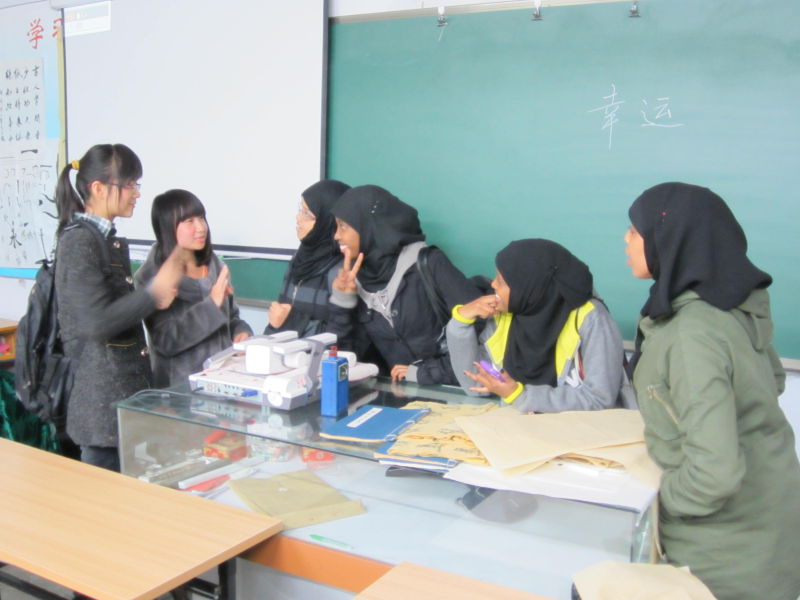 11月10日下午,在独具中国风韵的老年大学书法班教室内,白求恩医学院留学生办公室、阳光志愿者协会项目部、志愿服务部联手书法班共同举办了中外大学生书法学习活动。20余名留学生和10名中国学生参加了该活动。