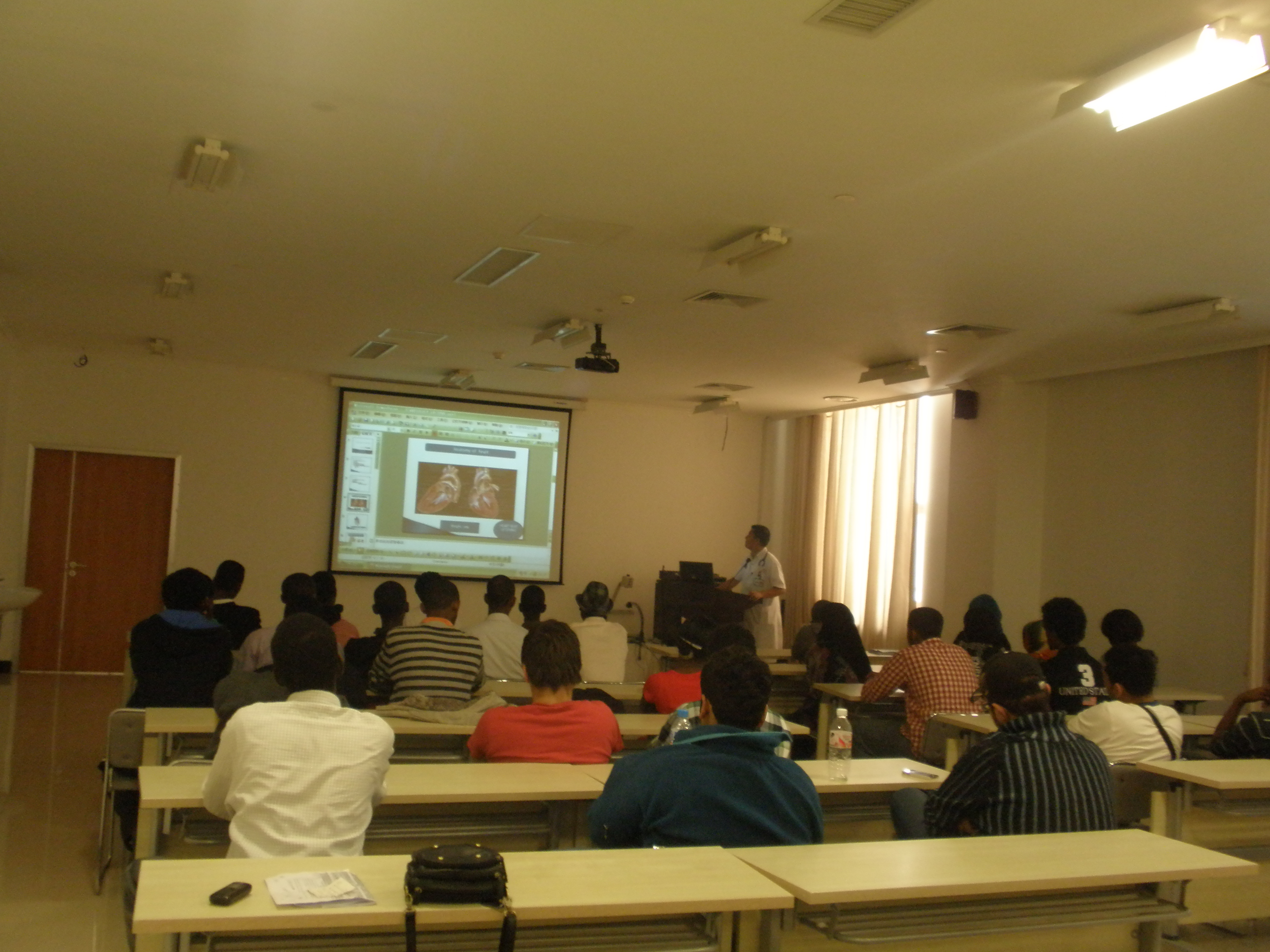 从9月6号开始,在同学们的期盼中,白求恩医学院为留学生开展的“Lab Visit”活动如期举行。在每周一、二、三、四的下午一点半,由来自白求恩医学院各学科优秀的硕士、博士留学研究生为新同学讲解本学科的基本信息,以及实验室、标本室、科室的具体情况。这些学科包括分子生物学、生物化学、微生物学、组织胚胎学、病理学、妇产科、胃肠外科、脊柱外科、皮肤科、放射线科、心血管科、麻醉科、手外科、风湿科、实验诊断学、以及骨科学。