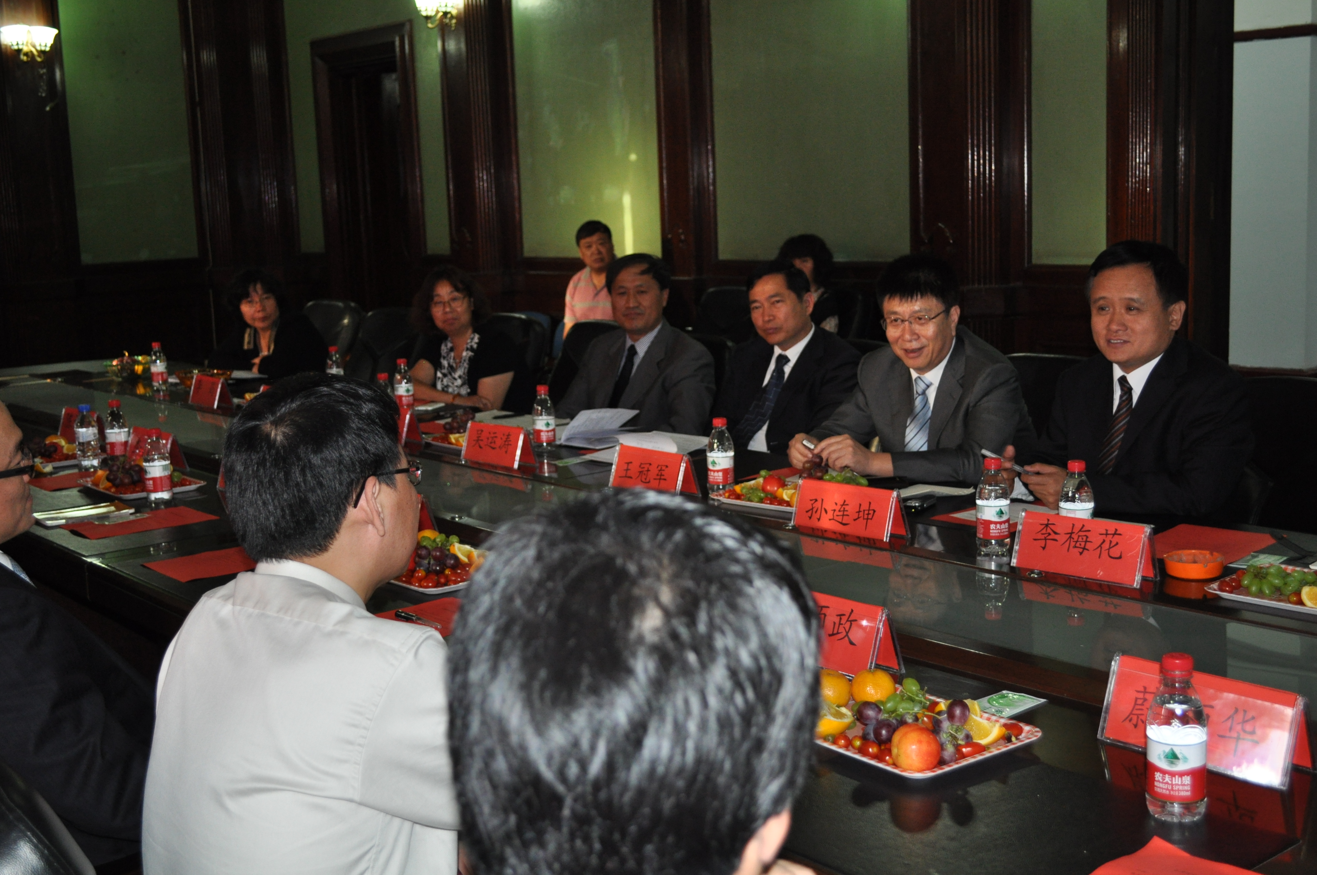 首先,常务副院长孙连坤和阳明大学医学院院长邱文祥分别介绍了双方来宾和各自学院的基本情况。随后,双方围绕“医学人文教育”的理念及课程设置和“PBL教学”问题进行了深入研讨。最后,副校长王冠军和阳明大学校长梁赓义均表达了进一步加强教学改革方面的沟通交流,进行深入合作的愿望。