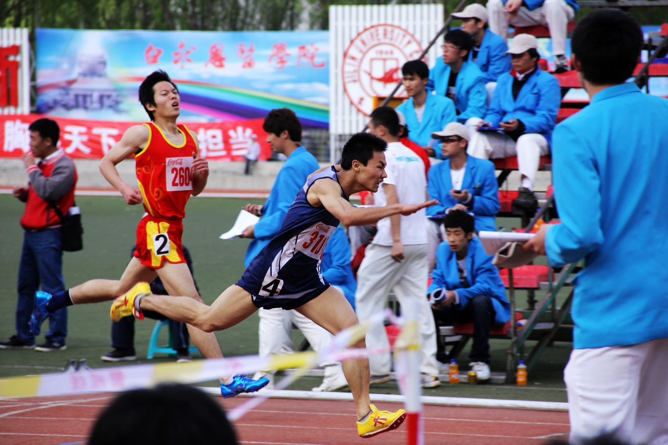 第50届田径运动会中,白求恩医学院选手发挥出色,在许多项目取得了突破。其中,10级周明铭在男子400米比赛中勇夺冠军,07级孙贺在男子1500米蝉联亚军,08级姜啸烨将男子110米栏铜牌收入囊中,09级文晶获女子三级跳远第四名,10级宫萍获女子一分钟跳绳第五名,08级于哲在男子胶球掷远比赛中获第六名,09级牟胜男获得女子400米的第六名。在集体项目中,由周明铭、唐少舟、唐明博、杜佳亮组成的男子4X100米接力获第七名,由文晶、王乐、周燕、王玥组成的女子4X100米接力获第八名。另外,周明铭、赵洪宇、殷立彬也分别进入男子100米、男子铅球、女子铅球比赛决赛,决赛奖在20日进行。(学生记者 张滨)