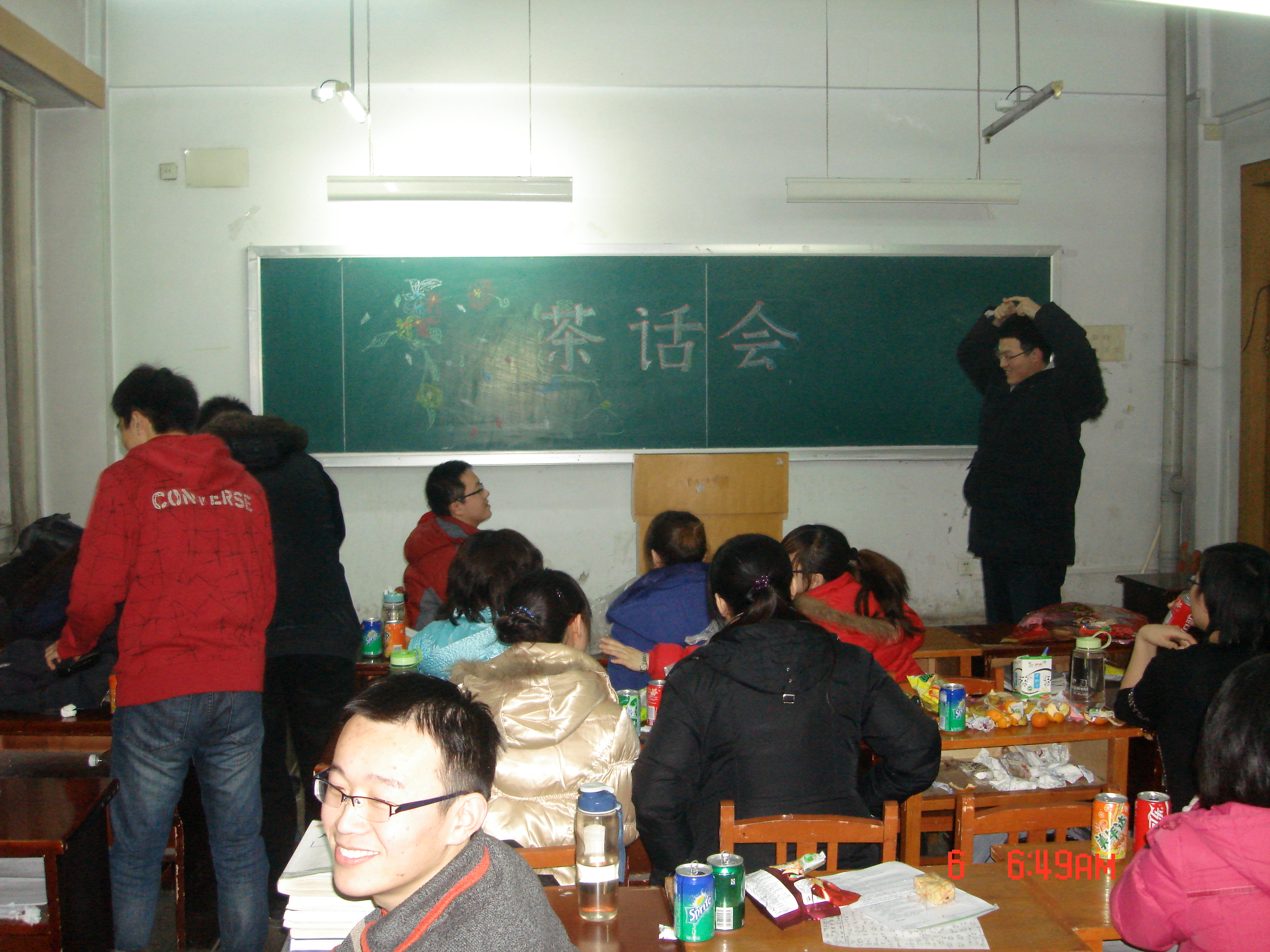 茶话会上,每位同学都畅所欲言,对自己在2010年的表现进行总结、对2011年进行憧憬,内容涉及学习、生活等各个方面。孙连坤教授结合学生们的发言谈了几点建议:一是,不要只看到学习生活中的琐碎小事,要有远大理想,心胸要开阔,展现白医人的风采;二是,注重外语的学习,切切实实把它作为工具来使用,不把眼光仅仅局限于过六级上;三是,珍惜同学之间的友情,珍惜自己所在的班级,共同努力,共同进步;四,培养自己的应变能力、决策能力,使自己成为具有领导能力的人才;五是,2011年春季学期开学后,班级内部进行讲课训练,为以后求职打基础。最后,同学们一同玩起了“成语猜猜看”的游戏。