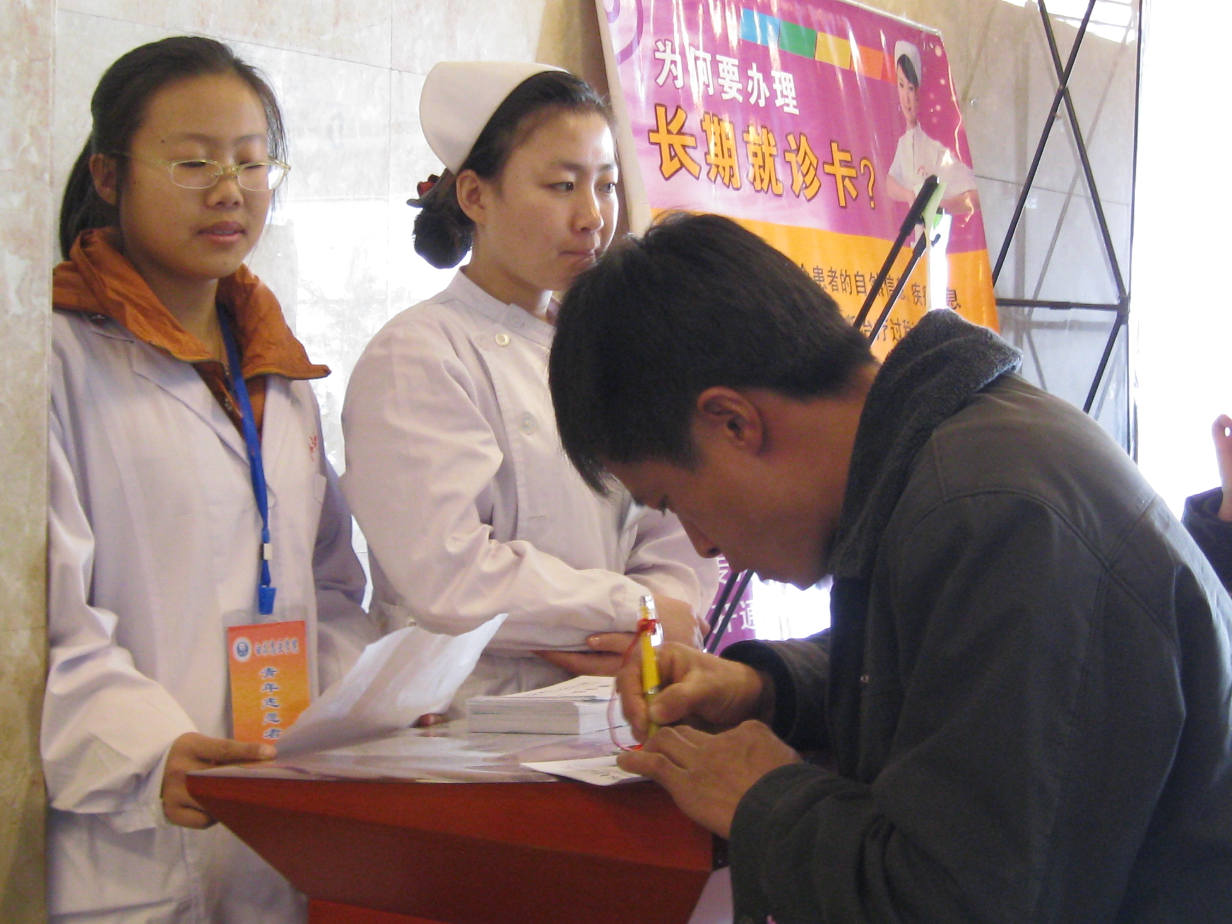 白求恩第一医院门诊部进行了第五次志愿服务活动。参加本次活动的25名志愿者全部是中心校区2010级长学制的学生。
