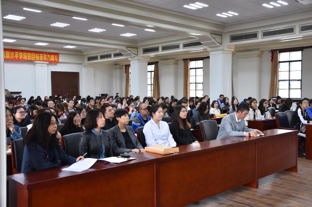 拟毕业研究生学位论文评审过程中出现的问题,提醒大家在论文撰写过程中及时纠正。随后,曹国丽副书就近期工作提出具体要求,用实例分析了端正学习态度、掌握学习方法和提高学习效率的辩证关系,并且反复强调安全问题的重要性,对日常管理和实验室科研中存在的安全隐患进行了详细的说明。最后,孙连坤院长围绕“论文撰写与毕业答辩”做了专题讲座。孙院长结合自身学习与工作经历,分享了科研工作的宝贵心得,督促全体同学在研究生学习期间,学会调整心态,脚踏实地,培养科研思维和科研能力。他指出:医学研究最为复杂,同学们务必要戒骄戒躁,悉心钻研。同时,他还对即将到来的毕业答辩进行了指导,为在座的各位拟毕业研究生答疑解惑。