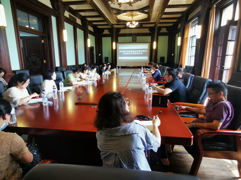 新型冠状病毒性肺炎科研攻关与专著研讨会在基础楼四楼会议室召开,会议由科研主管副院长辛颖教授主持,学院院长孙连坤教授、副院长刘海岩教授、孙巍教授出席了会议,各学系中青年科研骨干共26人参加了此次会议。