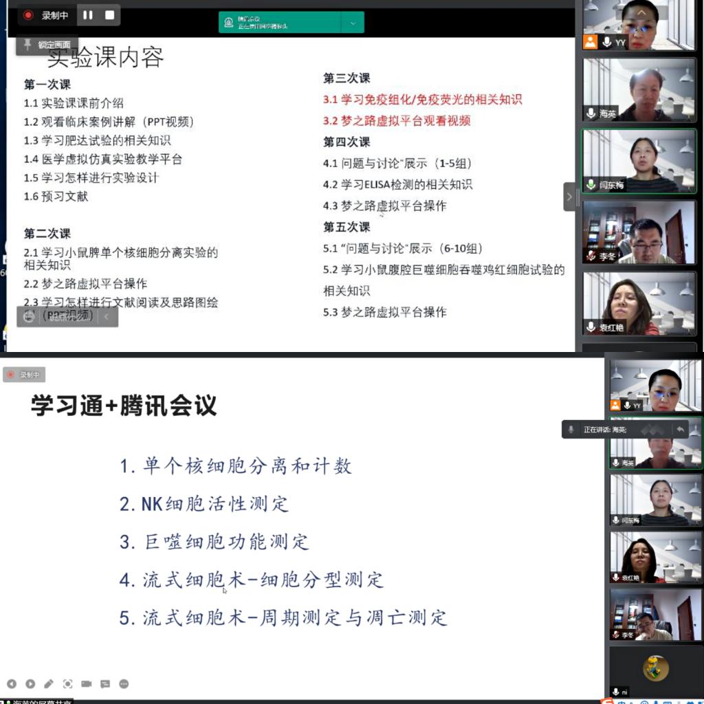 1. 结合直播讲解与虚拟操作模拟实验情境:通过超星学习通结合腾讯会议开展直播教学,还原线下授课状态,给学生提供最为便捷、更为多样的学习通道。采用梦之路虚拟实验平台,并针对虚拟实验项目自制课件给学生讲解,既利用了线上资源来完成基本实验项目及先进实验项目(如流式细胞术),又模拟了线下操作的情境体验,保证学生学习的效果。