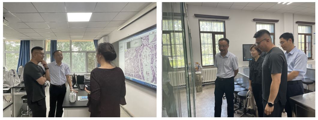 赵校长一行实地察看了实验教学中心各教学平台运行情况。基础医学院院长王放结合本科教育教学实际情况,就中心日常管理运行、人才培养、教学改革与研究及教学条件保障等工作进行了汇报。检查过程中,赵宏伟副校长围绕“新医科”学科交叉融合等内容与院长王放展开了热烈讨论,并对如何拓展实验教学资源等问题进行深入探讨。赵宏伟副校长指出,基础医学是医学教育的重要支柱,实验教学是本科教学的重要组成部分;基础医学国家级实验教学示范中心作为培养学生创新精神和实践能力的重要教学基地,要以狠抓教学质量为主线,以提高教师素质为核心,以现代教育技术为手段,深入推进实验课程改革,提升实验教学质量。
