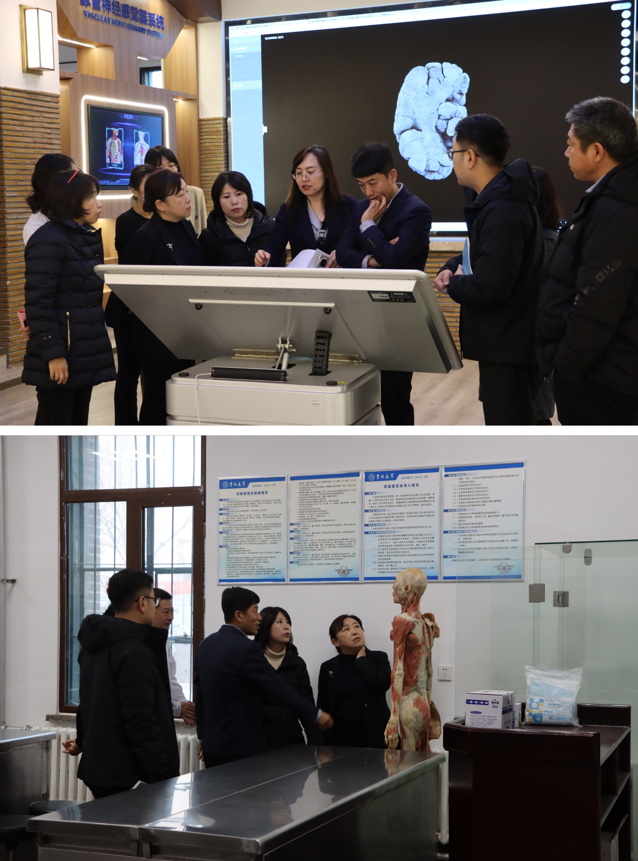副院长辛颖结合教育教学实际情况,就日常运行管理、教学科研条件等进行介绍,参观过程中双方就如何更好优化实验室建设与人才培养等问题开展了深入讨论,双方希望未来能够在人才培养、科学研究、高层次人才项目等领域开展更广泛深入的合作。