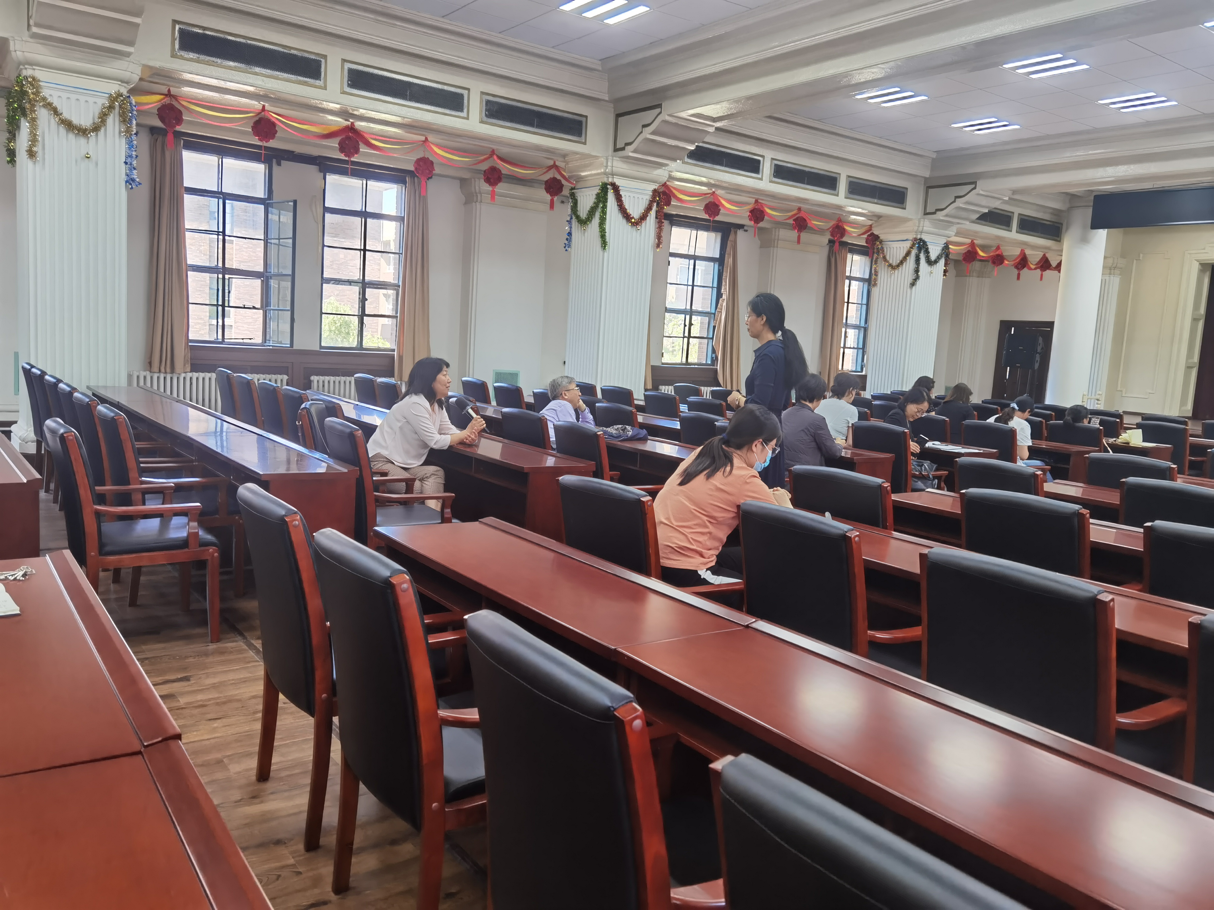 教学副院长辛颖主持,学系主任、教学骨干教师以及学院40周岁以下青年教师参会。