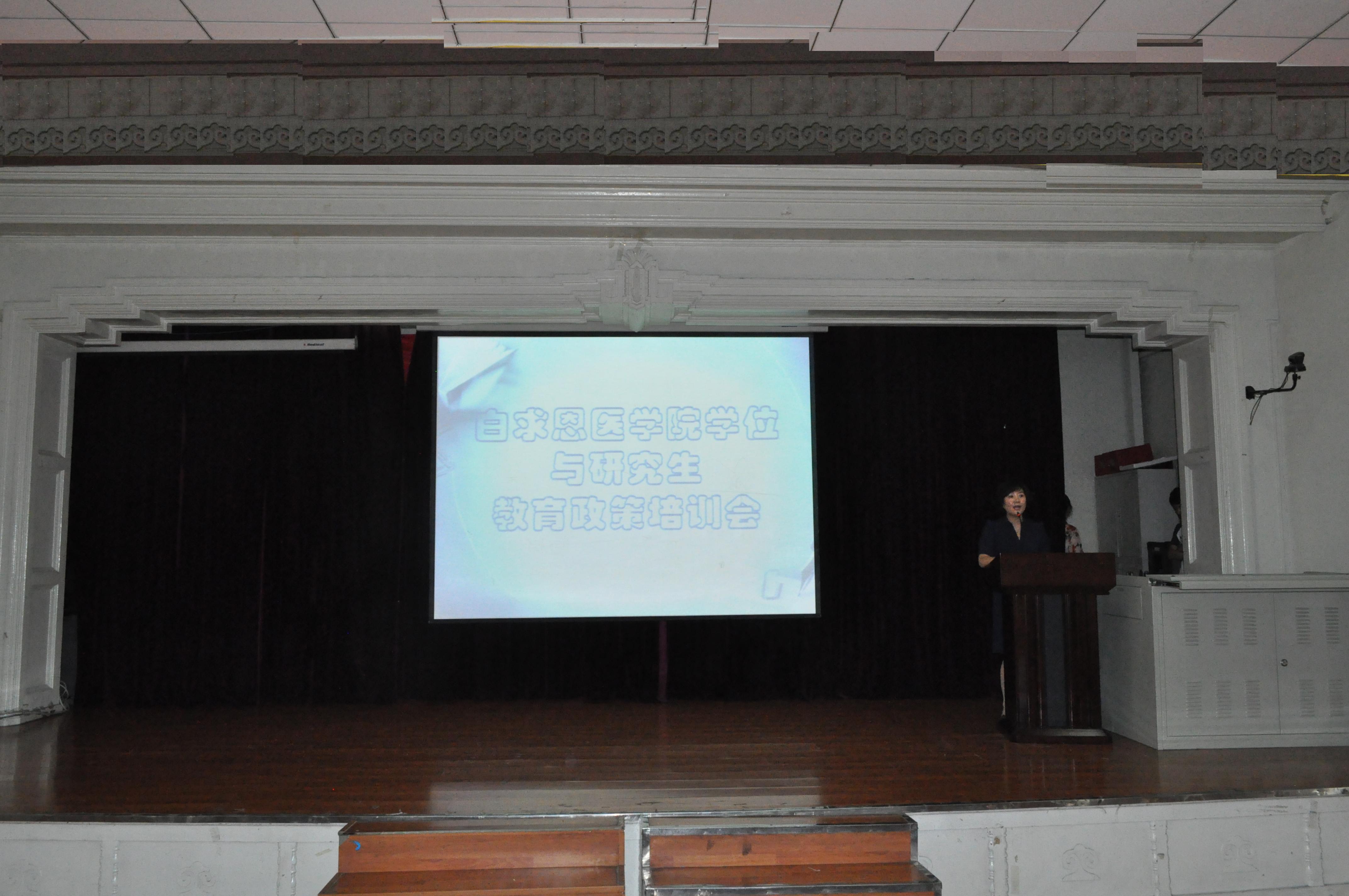 为使2012级研究生尽快的了解研究生相关政策,以便更好的规划研究生生活,8月27日上午,白求恩医学院组织新生在基础楼二楼多功能学术报告厅召开了学位与研究生教育政策培训会。研究生办公室主任黄梅就奖学金评定标准、学术诚信要求等相关政策为新生进行详细讲解,并介绍了近期即将开展的活动,同时提醒新生学习、生活应该注意的细节问题。之后,研究生助管李敏介绍了如何使用研究生管理系统以及选课的注意事项。2012级全体硕士、博士研究生参加了培训会。