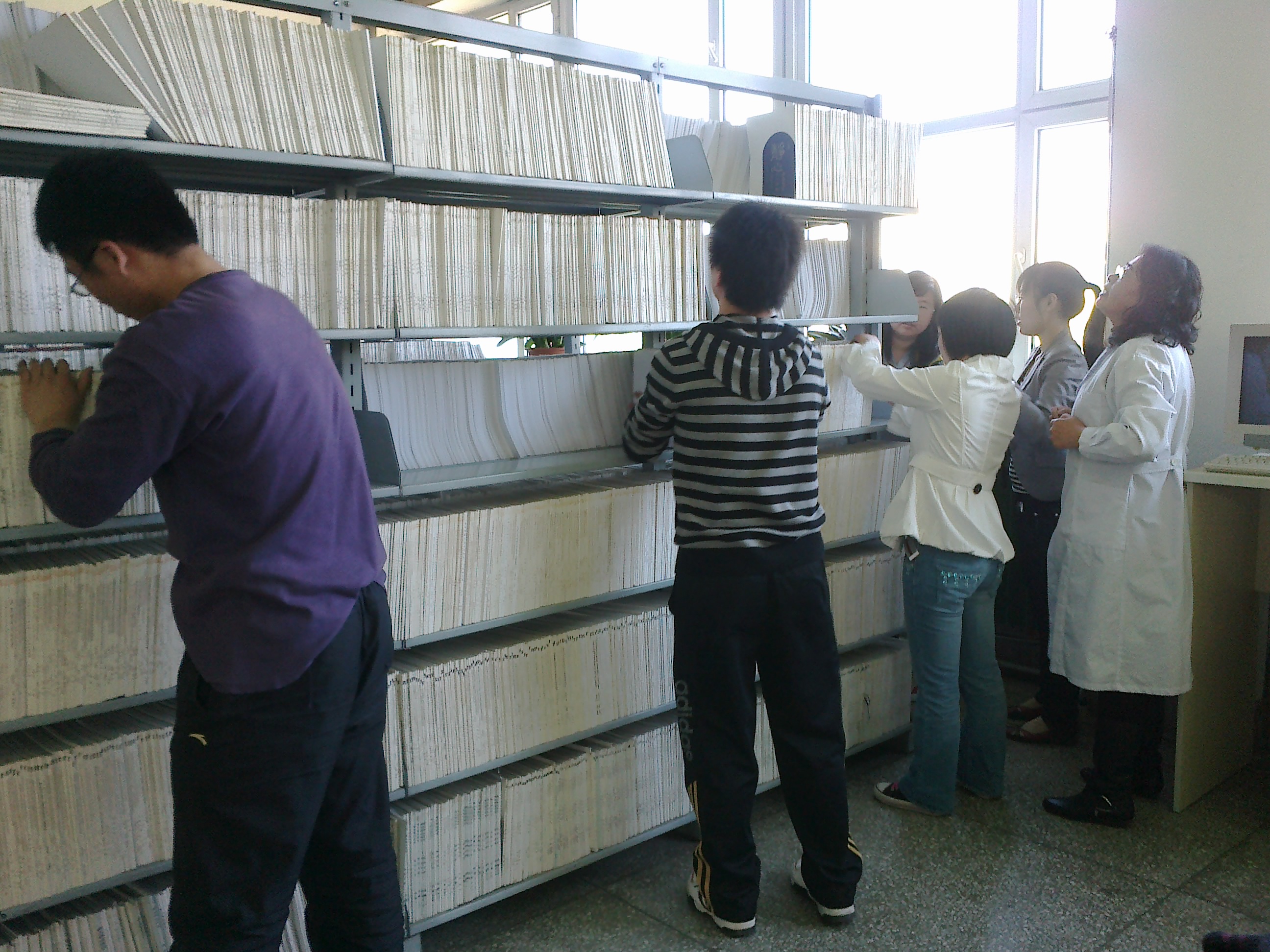 义工服务开始之前,图书馆的老师为同学们讲解了为学术论文归类的程序,按照姓氏的英文字母和笔画顺序排列,以方便广大师生检索和阅览。同学们为提高工作效率,当场拟定科学流程,细化分工,团结合作,仔细查找,认真分类,很快就将研究生学术论文分门别类排列的整齐有序,得到医学图书馆老师的高度评价。每次活动都持续2小时左右,看着一本本学术论文依次归类上架,同学们露出欣慰的笑容。