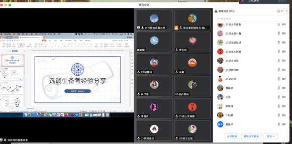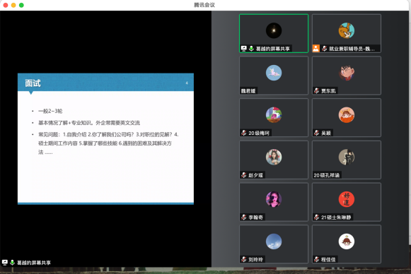 会上五位优秀研究生代表分别从升学、公考、企业、医疗事业单位四个方面为同学们带来干货满满的就业分享。考取山东大学博士的阮宁从个人概况、考博时间、选导师、考试形式等方面为大家分享了考博经验;签约江西定向选调的刘玲玲从选调生政策了解、招考一般流程、考试科目及成绩核算、笔试行测备考、笔试申论备考、面试备考等方面为大家分享了公招考试经验;签约著名药企药明康德的葛越从获取招聘信息、投递意向岗位、面试等方面为大家分享了入职公司的经验;入职西安交通大学第一附属医院的唐榕从信息获取途径、考核内容方面为大家分享了医院招聘的经验;签约黑龙江定向选调省直岗位以及济南某三甲医院的 f95zone