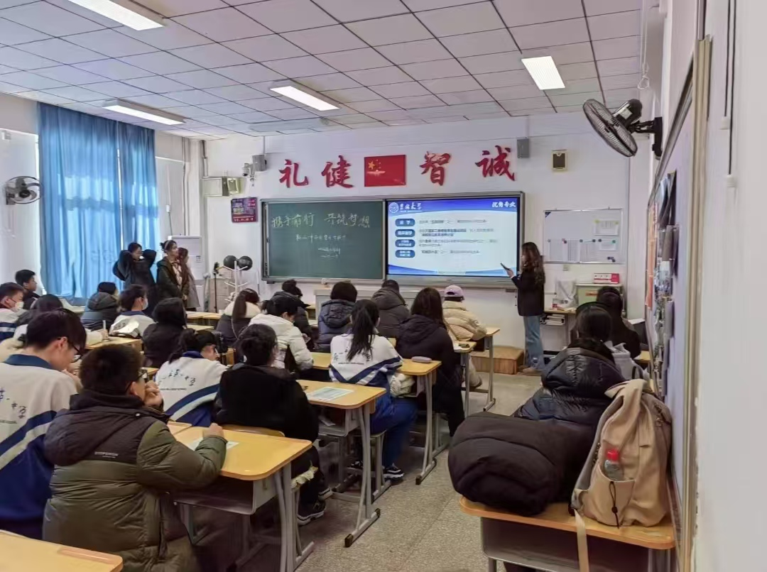 临近活动的尾声,团队成员们设置了一个互动问答环节,鼓励学生们积极提问,成员们在现场解答疑惑。这一环节旨在增强宣讲活动的互动性和趣味性,使学生们在轻松愉快的氛围中获取有针对性的信息。