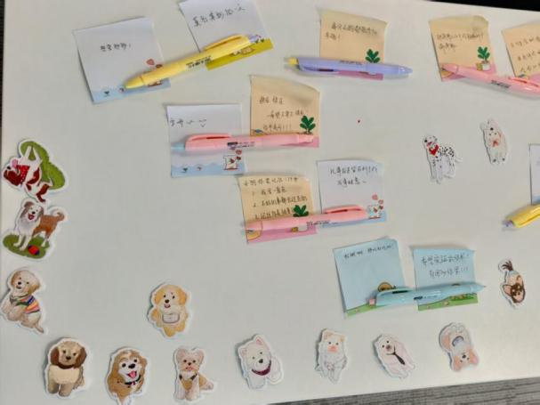 的同学们在“小狗卡片------情绪交换实验室”中开启了一场治愈心灵的奇妙旅程!在这里,他们用彩色卡片写下真心话,领养属于自己的“心灵小狗”,让纸片小狗成为自己独一无二的“情感寄托”,分享快乐,告别烦恼,安全感满满!