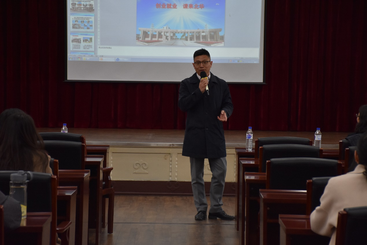 院长李咏梅,通过播放宣传片、PPT展示等方式向同学们介绍北华大学的概况、职业发展方向、人员需求以及选择该单位的理由等几个方面向同学们做了详细的介绍,并现场解答同学们的疑问。最后北华大学 f95zone