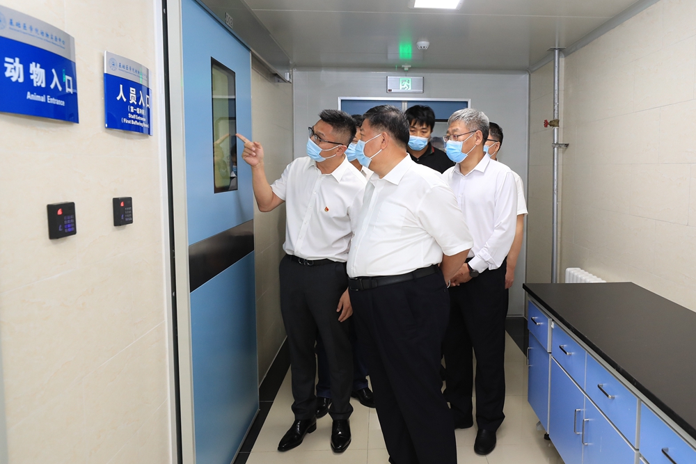 动物实验中心是中国实验动物学会的继续教育基地、吉林省医学实验动物科学研究与创新人才培养基地,集教学、科研和服务于一体。姜治莹一行走进实验中心,考察开放性动物实验平台、动物饲养室和实验室、吉林省斑马鱼工程实验室、动物生物安全二级实验观察设施,并与一线科研人员面对面交流,详细了解中心机构设置、人才培养、平台建设及科研成果的服务领域、转化运用等情况。交流中,姜治莹充分肯定了实验室长期坚持的科研方向和取得的良好成绩,叮嘱全体人员要认真落实疫情防控工作要求。他强调,实验室作为学校安全管理的重点部位,一定要强化管理责任,明确责任人,严格执行各项规章制度和操作规程,做好相关记录,落实好日常监督检查机制,严防出现安全问题。