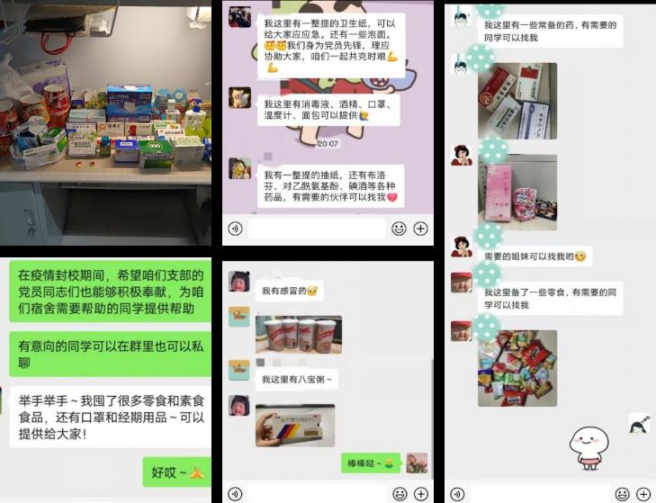 研究生辅导员孙佳钰老师被学校党委任命为前卫北区四公寓师生临时党支部书记和楼长,负责学院一百余名学生的教育管理和服务保障工作以及四公寓楼内四百余名学生的思想政治工作。3月17日下午,临时党支部刚一成立,孙佳钰老师立刻带领支部党员同志召开了第一次线上支部会,会议讨论的第一件事就是如何充分发挥党员的先锋模范带头作用,团结一心,共克时艰。在分配和落实好宿舍楼内日常疫情防控工作之外,支部成员们积极讨论在封闭校园管理期间还能为其他同学做点什么,如何更好地解决同学们的生活所需。支部决定在四公寓楼的611室设立“爱心自助屋”,让同学们可以足不出户地共享生活必需品,并安排专人定期对自助屋内进行消毒。支部的二十余名党员首当其冲,积极响应,把自己寝室里的食物、常见药品、生活物品等放到这里。爱心自助屋内现有常用药品十余盒,各类食品二十余种,防疫物资包括口罩、消毒湿巾、洗手液等十余件。很多同学都在自助屋内找到了自己急需的物品,还有很多同学没有选择去拿,而是选择奉献爱心,把自己的物品放了上去,让这里成为了一个接受爱心、奉献爱心、传递爱心的中转站。