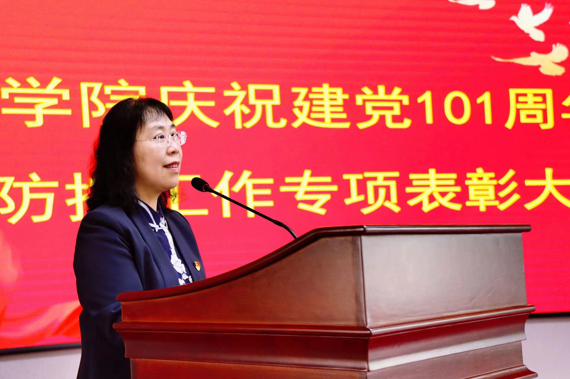 为弘扬伟大建党精神,凝聚学院奋进力量,充分发挥先进典型作用。2022年6月17日上午,学院在基础楼二楼报告厅隆重举行庆祝中国共产党成立101周年暨疫情防控专项工作表彰大会,以表彰在本次疫情防控校园封闭和过渡期管理期间表现突出的集体和个人,学院全体教职工及学生约三百余人以线上线下相结合的方式参会。大会由学院党委副书记曹国丽同志主持。