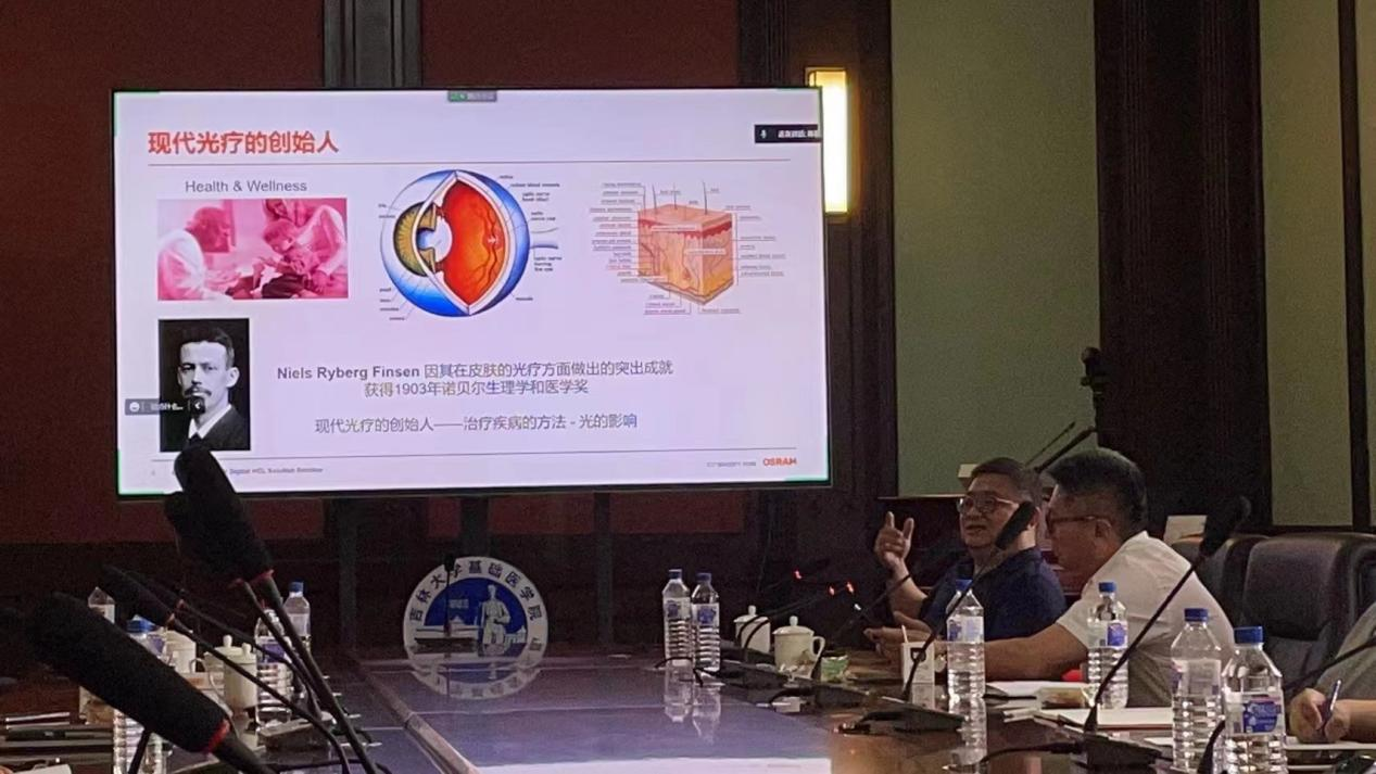 随后,光学解决方案的全球领导者欧司朗(中国)照明有限公司韩总为大家介绍了3D打印技术在照明工业领域的进展与光健康与健康照明的理念和科研进展,为大家打开了另一扇门,让大家了解到一种更加健康科学的照明方式,即满足人类生理健康和心理健康的光学健康疗愈方案。