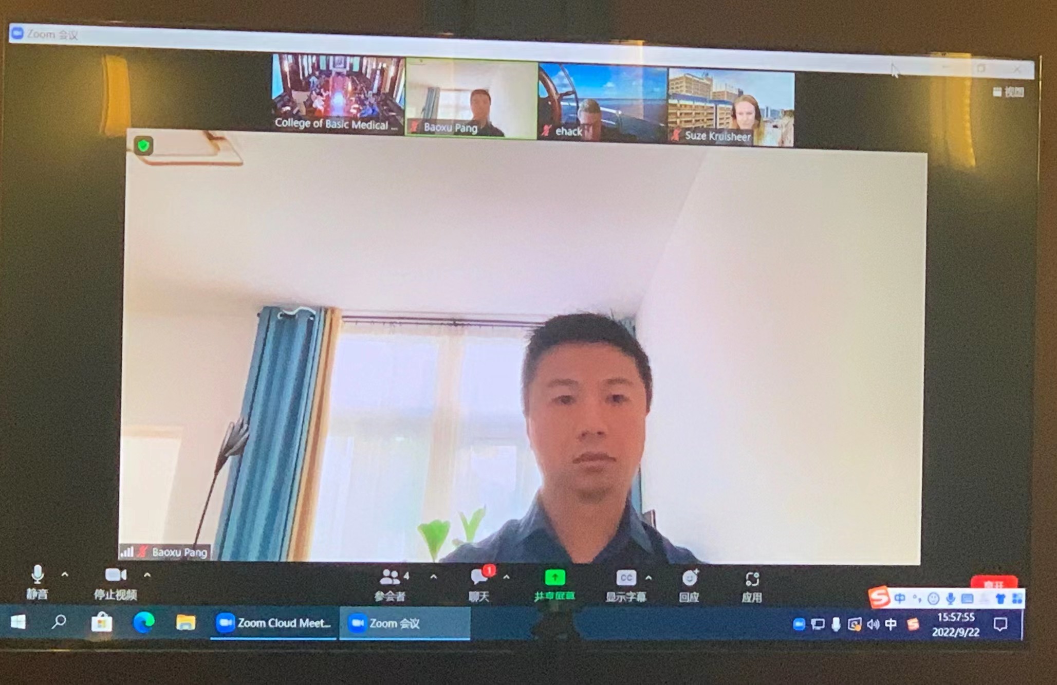 院长王放、党委书记王晓荣、副院长刘海岩、副院长辛颖、生物医学科学系主任张灵、病原生物学系外籍教授杨青等共同在“云端”就双方合作意向进行了磋商。