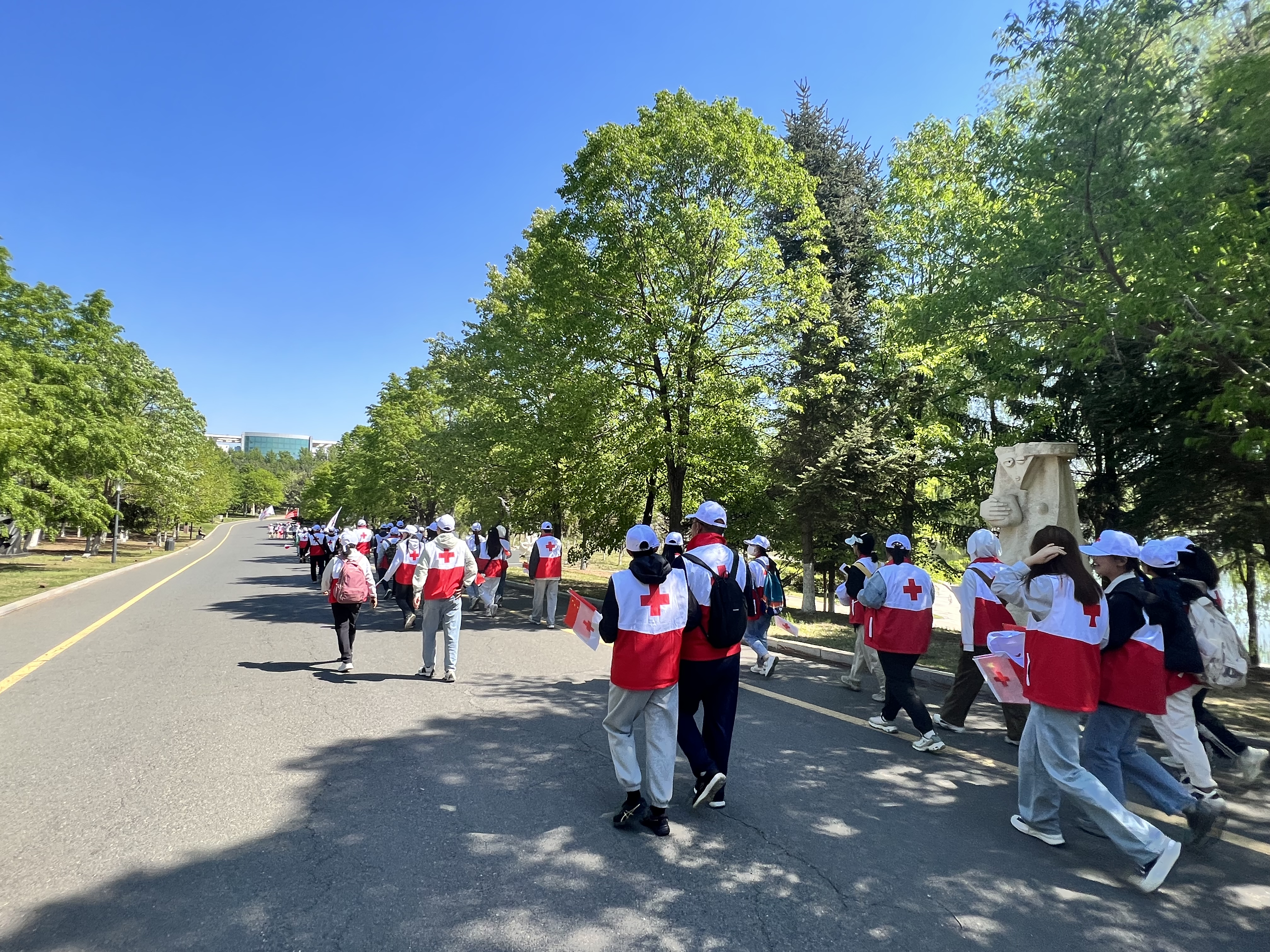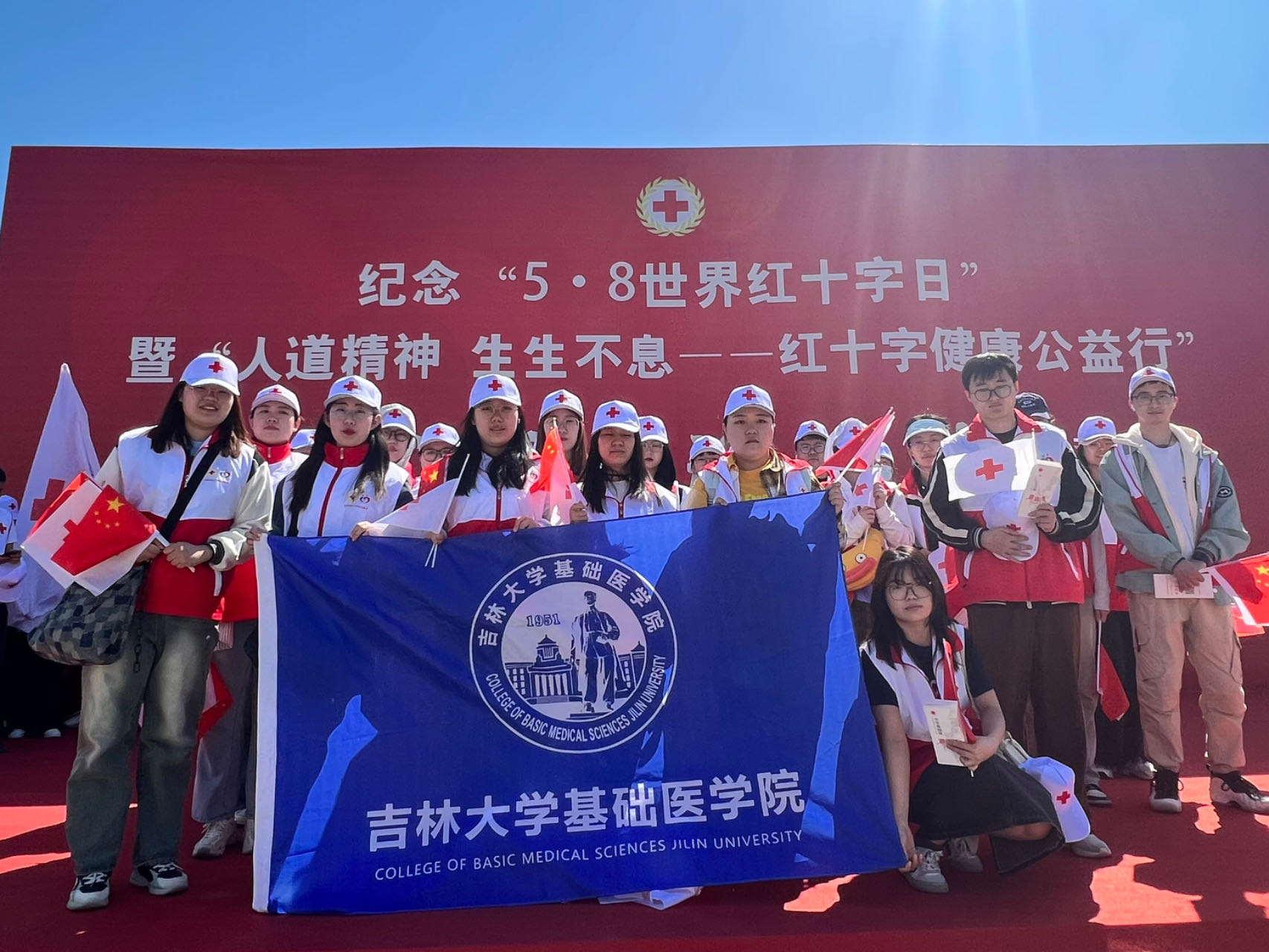 为弘扬“人道、博爱、奉献”的红十字精神,动员更多社会力量参与和支持红十字事业,5月8日,在第77个“世界红十字日”之际,吉林省遗体捐献志愿者服务队、 f95zone “基础医学之光”志愿者协会一行40余人,来到长春市雕塑公园参加吉林省红十字会主办的“纪念‘5·8世界红十字日’暨‘人道精神,生生不息——红十字健康公益行’宣传义诊活动”。