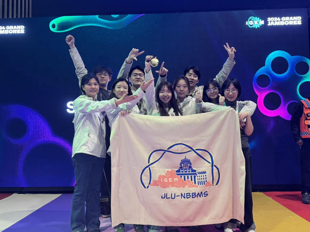 金牌背后倾注了团队成员的汗水与耕耘。在将近一年的备赛过程中,JLU-NBBMS团队圆满完成了包含文献调研、项目选题、科学实验、社会实践、科普教育、美术设计、网站开发等多项前期任务。在巴黎总决赛现场,参赛队员们自信从容,稳定发挥,展示了过硬的合成生物学知识、严谨的实验思路和创新的实验设计,最终荣获国际金奖,将吉大学子的风采展示给全世界!