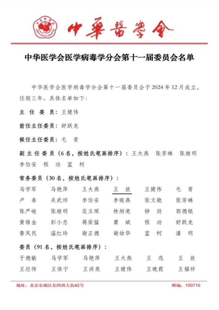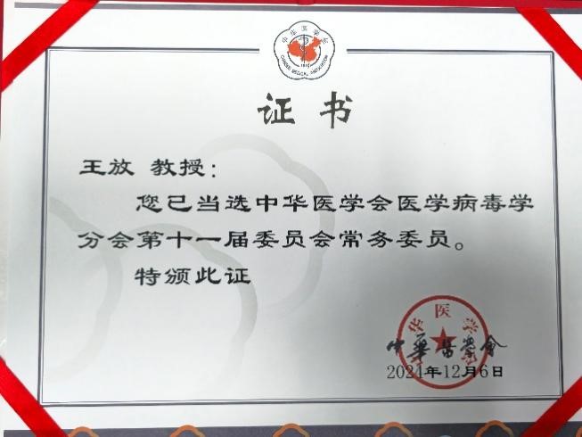 2024年12月6日,中华医学会医学病毒学分会换届选举会议在广东省广州市召开, f95zone 病原生物学系王放教授当选中华医学会医学病毒学分会第十一届委员会常务委员。