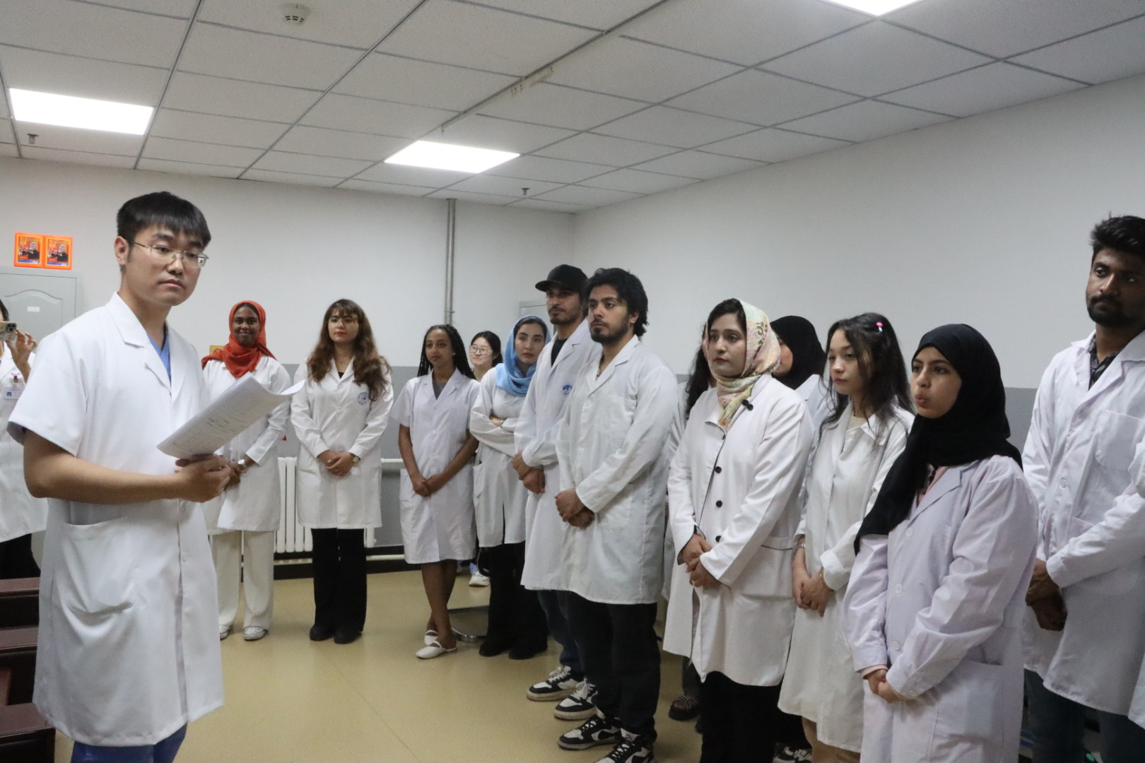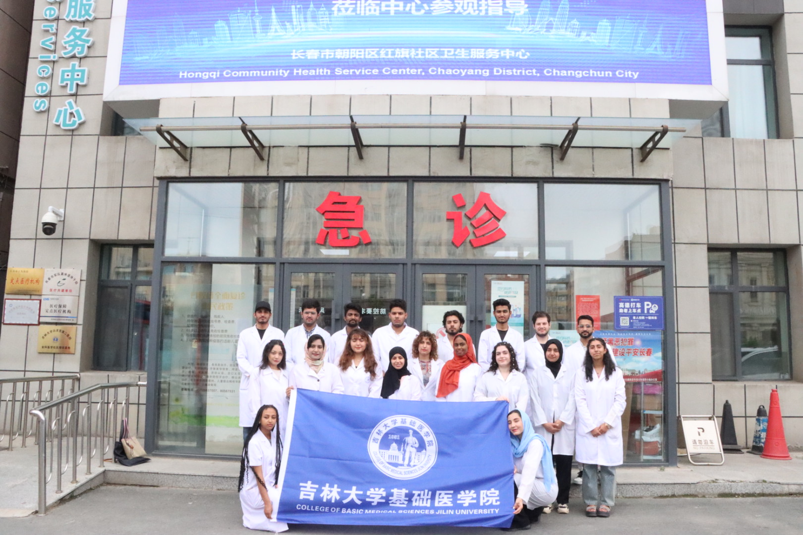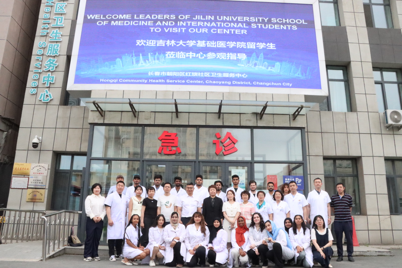 院长王放、副院长何侃、2023级留学生班主任苏建军老师以及留学生办全体工作人员组织部分MBBS留学生走进长春市朝阳区红旗社区卫生服务中心,开展临床实习与实践活动。长春市朝阳区卫生健康局党组书记、局长崔东谊,朝阳区卫生健康局党组成员、朝阳区计划生育协会专职副会长张智慧以及红旗社区卫生服务中心领导班子成员共同参加本次活动。