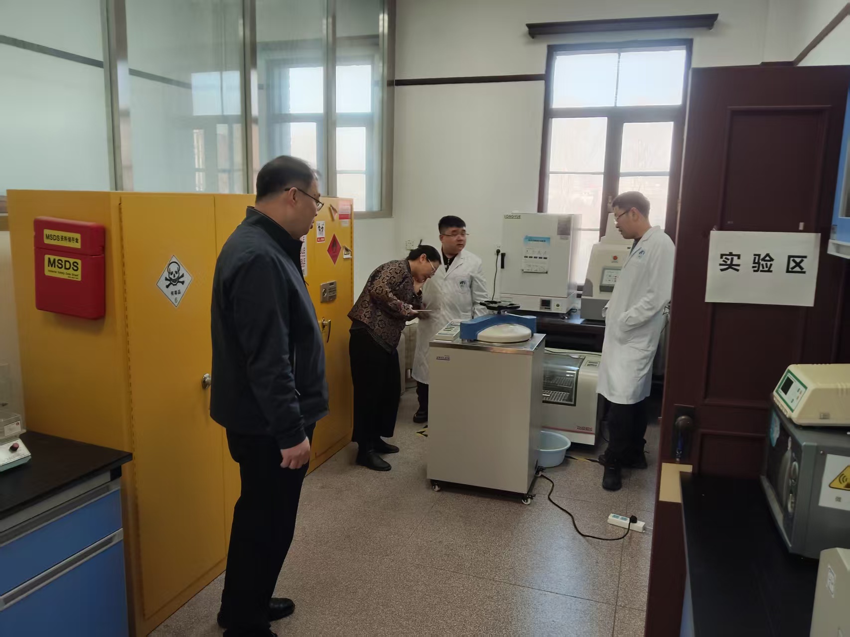 开展实验室日常安全及消防安全检查。曹海波副院长、张浩、董超、丁健峰及柴青山老师参加本次检查工作。