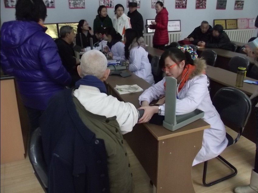 简单的自我介绍后,话剧团的志愿者们以小品《相亲2》拉开了活动的序幕,精彩的表演赢得了社区老人和同学们的阵阵欢笑。随后,志愿者伊丽娜又带来一首蒙古族风情的草原歌曲——《鸿雁》,甜美的歌声博得了阵阵掌声。室外大雪纷飞,而室内则充满欢声笑语,洋溢着春天般的温暖。表演过后,医疗队的同学们为社区老人们测量了血压,并对老人们提出的日常保健问题进行了耐心细致的解答。另外,志愿者们也宣传一些健康小知识,教老人们使用血压计,并主动和他们聊天,受到了社区居民的一致好评。
