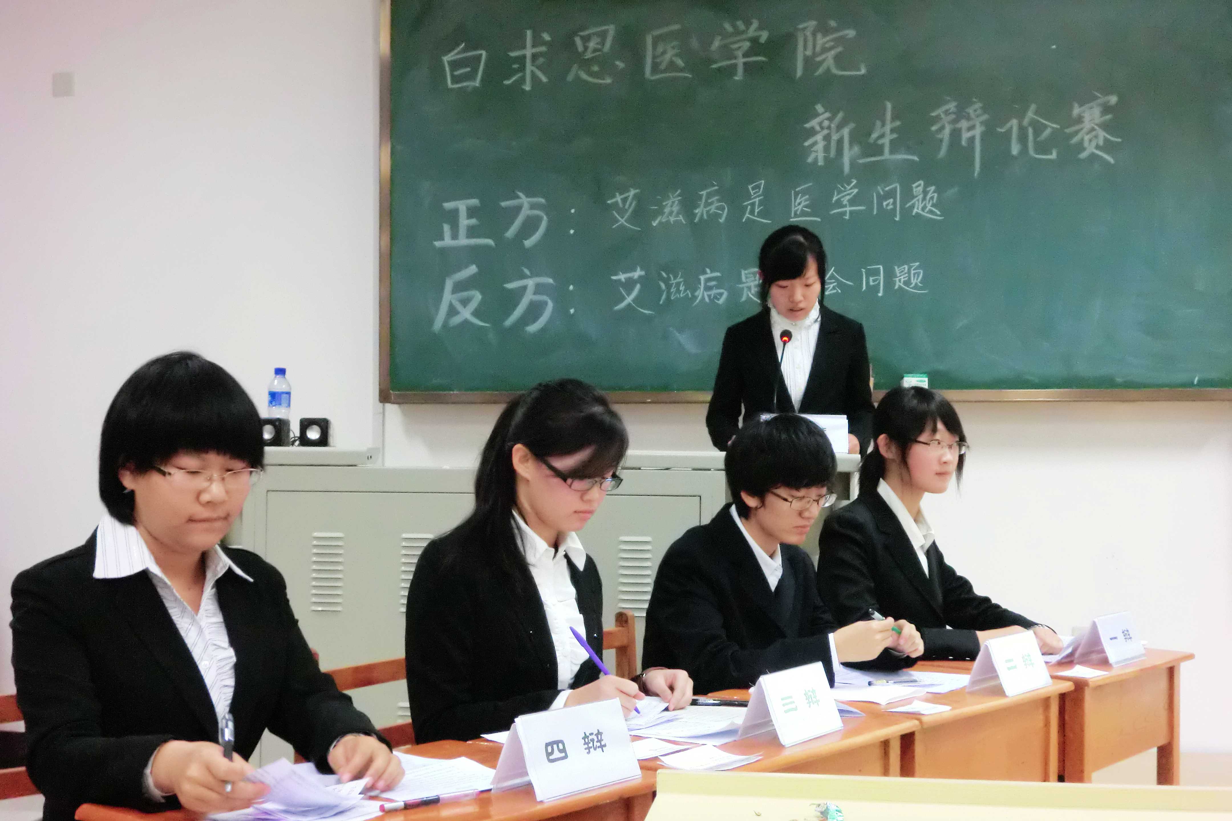 近日,白求恩医学院新生辩论赛在李四光楼102教室拉开帷幕。截止至10月12日,共进行五场初赛、两场复赛、一场表演赛。本次比赛由白求恩医学院团委组织、策划,旨在丰富学生文化活动、增强学生理论水平、选拔优秀辩手加入白求恩医学院辩论队。经过几天的激烈比赛,选手们展现了灵活的辩论技巧、深厚的知识沉淀以及扎实的语言功底,为观众献上了一场场博弈智慧的精神大餐。
