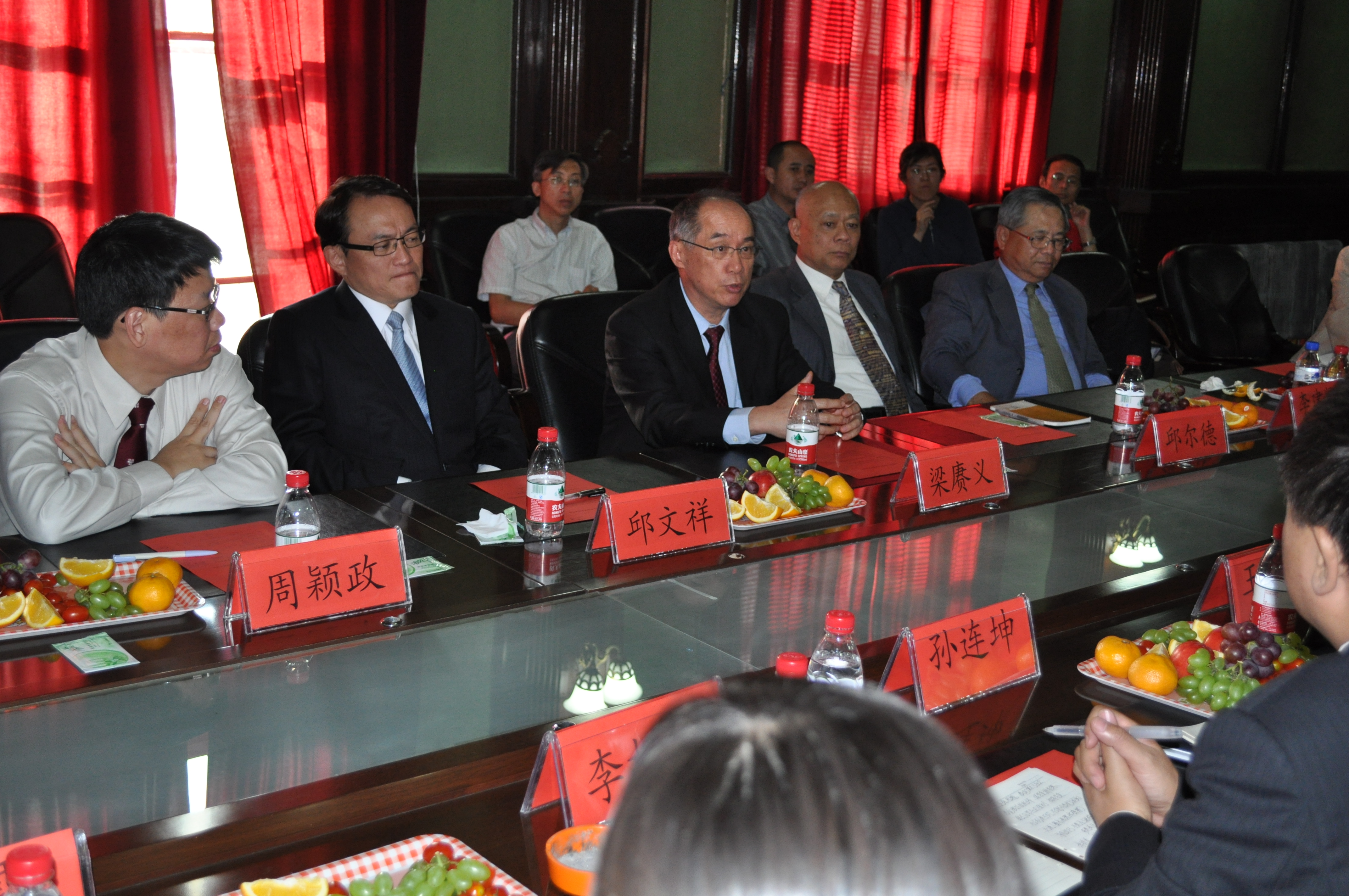 首先,常务副院长孙连坤和阳明大学医学院院长邱文祥分别介绍了双方来宾和各自学院的基本情况。随后,双方围绕“医学人文教育”的理念及课程设置和“PBL教学”问题进行了深入研讨。最后,副校长王冠军和阳明大学校长梁赓义均表达了进一步加强教学改革方面的沟通交流,进行深入合作的愿望。