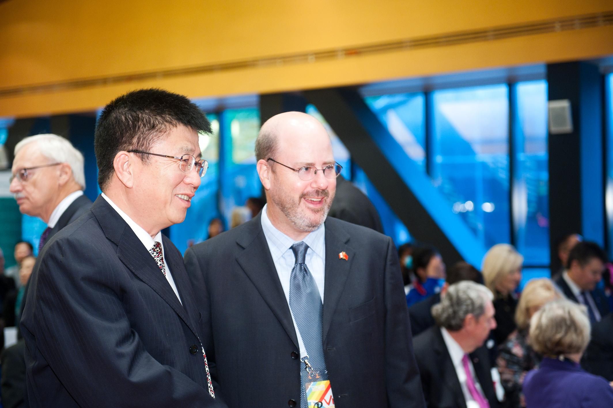 副校长王冠军、白求恩医学院党委书记屈英和等出席了仪式。仪式上,副校长王冠军与加拿大大使馆公使南杰瑞、宏利金融董事长Ms.Gail Cook-bennett、宏利金融总裁兼首席执行官邓广能等进行了亲切的交流,并共同书写中国字“爱”,标志着“宏利白求恩基金”的成立。