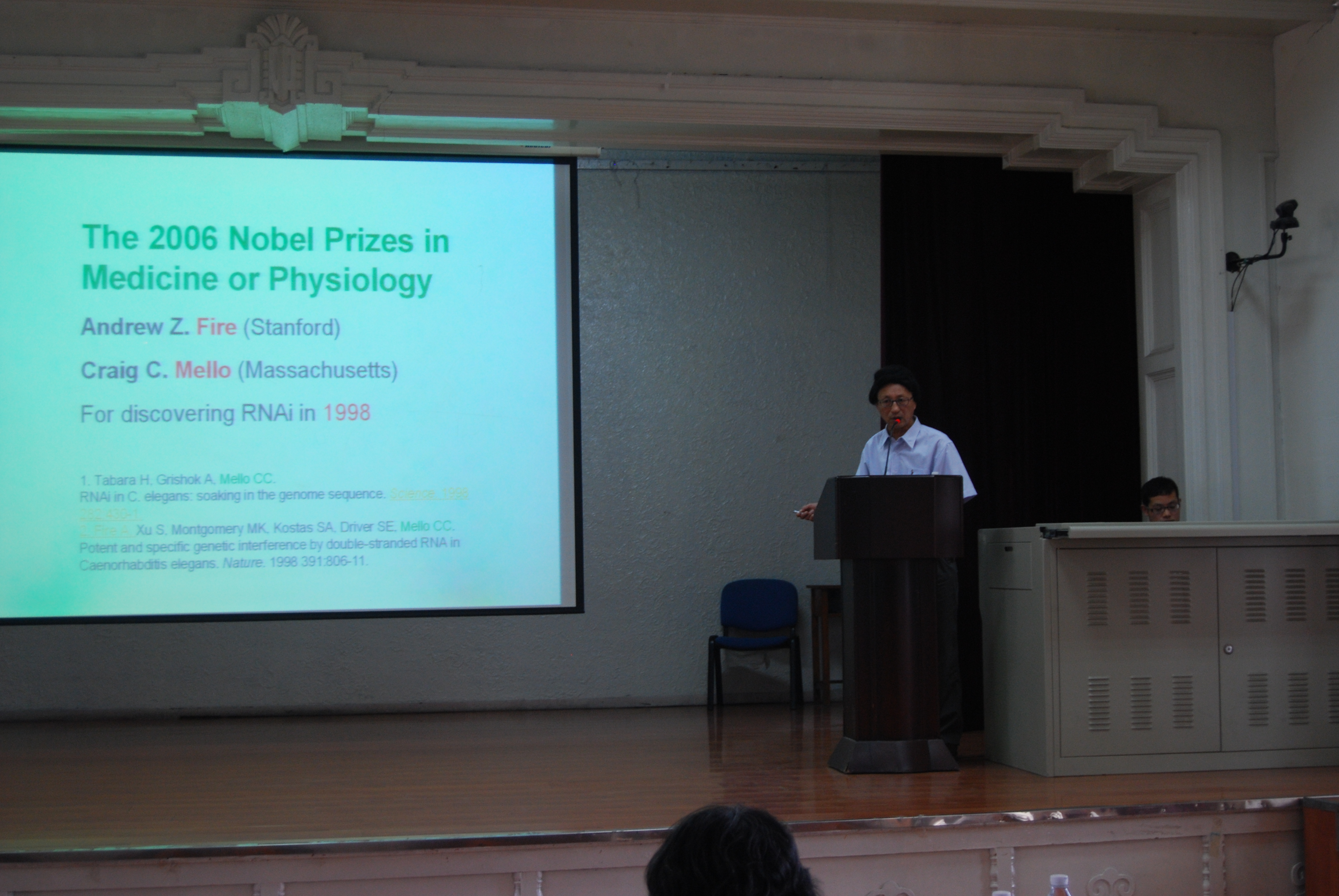 蒋建东教授是国务院学位委员会委员、教育部“”、教育部“创新团队”主持人、卫生部突出贡献中青年专家、2005年“全球重大卫生挑战计划”(GCGH, 美国NIH/比尔盖茨基金会)第10主题药物平台首席专家。曾在Nature Medicine、Cancer Cell、Cancer Research、Hepotology等国际知名杂志发表论文70余篇,获得中国及国际发明专利8项,相应的科技转化2项。曾获教育部“跨世纪优秀人才培养计划”基金、国家自然科学基金委杰出青年基金、香港“求是”杰出青年学者奖、国家五部委首批“新世纪百千万人才工程”国家级人选等。其培养的19名研究生中有2人获教育部全国优秀博士学位论文。在报告中,蒋建东教授以《抗感染药物:走进前沿》为题,回顾了我国抗感染药物由依赖进口到仿制国外产品,发展到今天的自主研发并垄断全球的原料药的历程,介绍了目前抗感染药物的研究热点及难题,鼓励医学青年科技工作者和医学生发奋图强,为我国医药卫生事业的发展贡献力量。