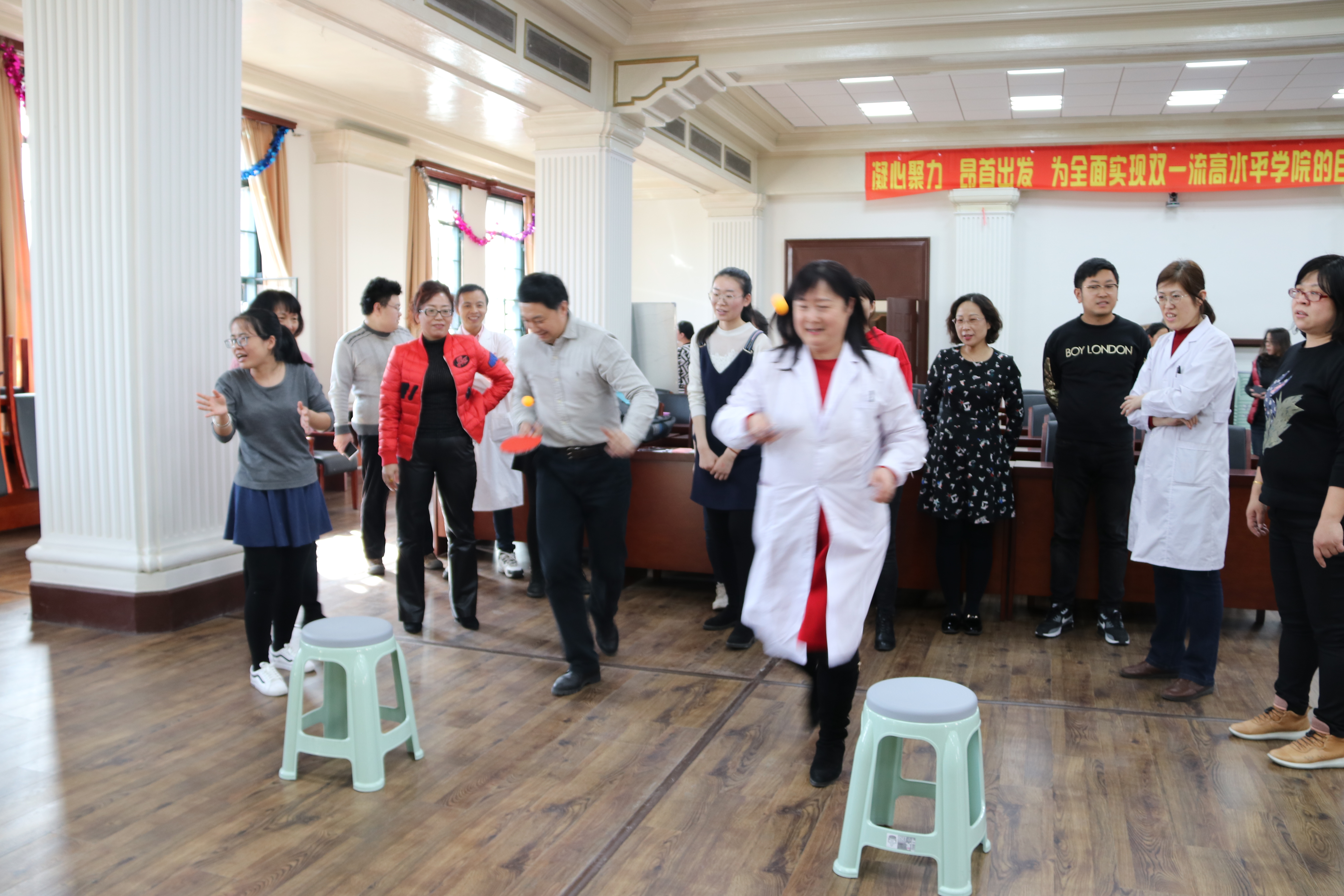 女教职工团结、奋进、健康、向上的良好精神风貌,同时为了丰富女教职工的业余文化生活,促进女教职工身心健康,3月6日下午,学院妇委会、工会、党委组织全院教职工开展了国际妇女节健身活动。活动由学院行政副院长程丕显主持。