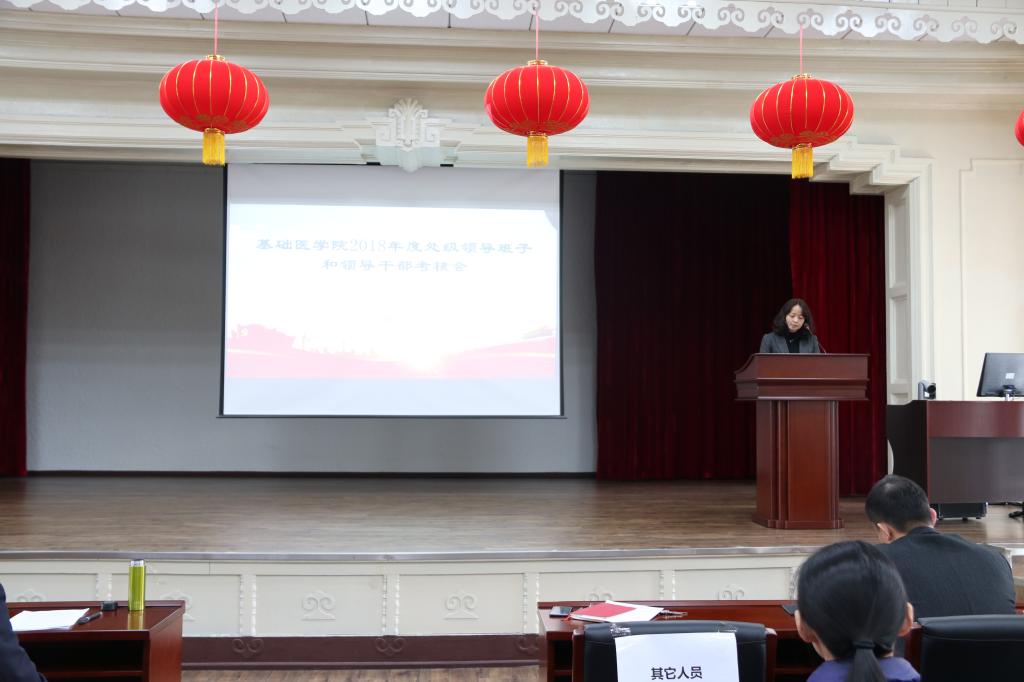 在基础二楼报告厅召开了2018年度领导班子和领导干部考核会,学院全体教职工和部分学生代表参加了本次会议,会议由学院党委书记郑爽主持。